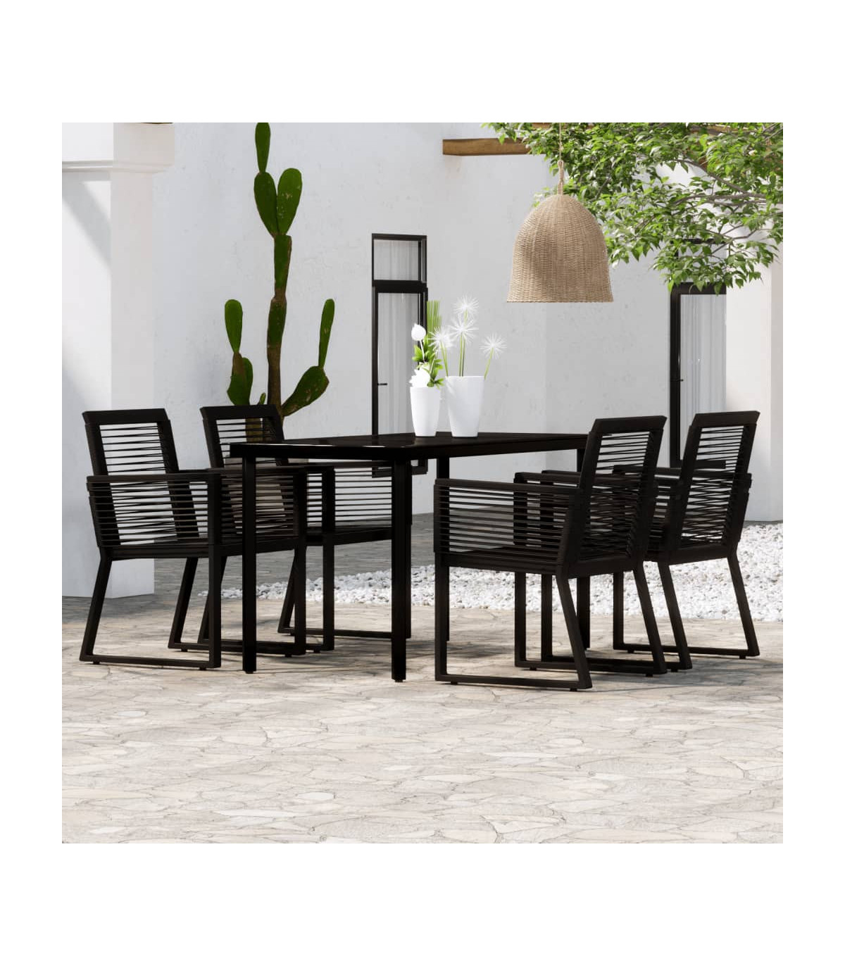 5 Piece Garden Dining Set Black