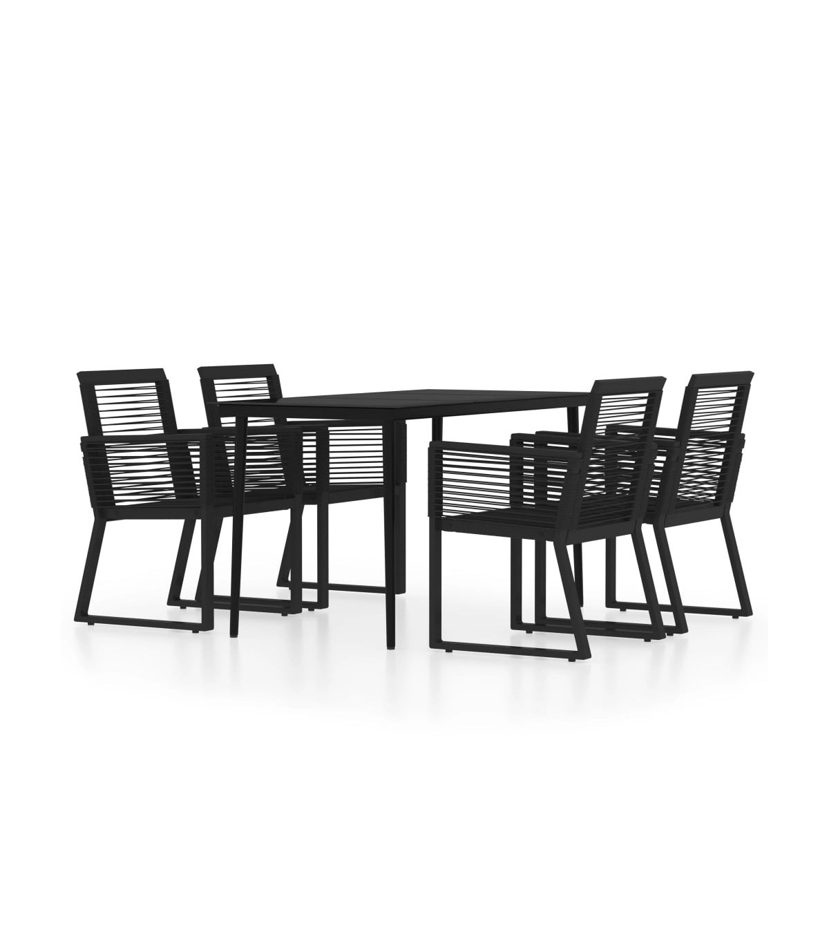 Create a compelling and cohesive aesthetic in your outdoor space with this garden dining set! This dinner table is made of a powder-coated steel frame, sturdy and stable for daily outdoor use. The smooth glass tabletop is easy to clean with a damp cloth and perfect for placing meals, drinks and other decorative items. The garden chairs are made of PVC rattan, woven over a fine lacquered steel frame, making them stable and resistant to poor weather and UV rays. Note: In order to extend the life of your outdoor furniture, we recommend you to clean it regularly and do not leave it outdoors without protection unnecessarily. Clean: Use a mild soap solution. Storing: If possible, store in a cool, dry place indoors. If the product is stored outdoors, protect it with a waterproof cover. Wipe and dry the excess water or snow from flat surfaces after a rain or snowfall. Allow sufficient air circulation to avoid moisture-related damage.