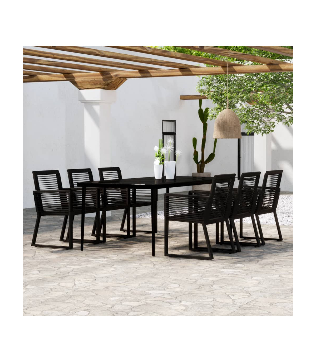 7 Piece Garden Dining Set Black