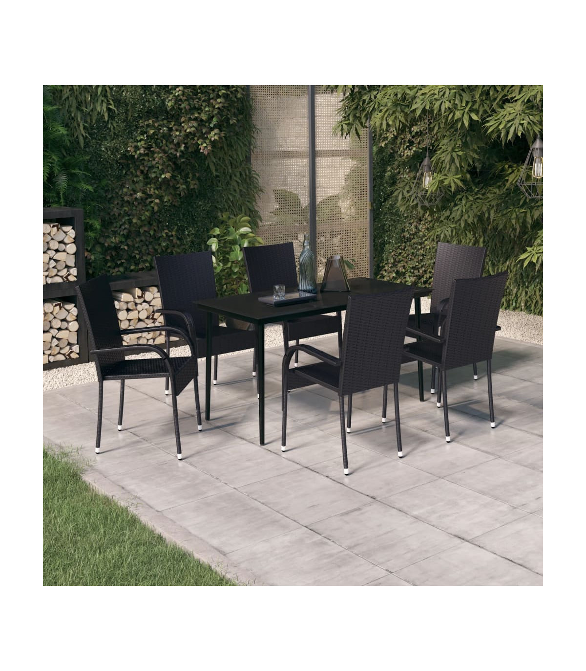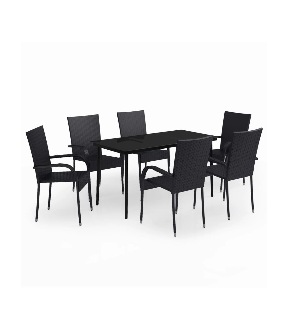 This garden dining set is a great choice for dining or relaxing in the outdoor space! Durable material: PE rattan, also known as poly rattan, is weather resistant and easy to clean. It remains beautiful on the outside for a long period of time. It offers great quality, convenience and an aesthetic look.Sturdy frame: The powder-coated steel frames make the outdoor dining set sturdy and stable for daily outdoor use.Practical tabletop: The smooth tabletop of the dining table is made of tempered glass which is easy to clean with a damp cloth. Additionally, the sturdy tabletop is perfect for placing meals, drinks, and other decorative items.Flexible design: Thanks to the lightweight construction, these outdoor chairs are easy to move and can be stacked to save space when not in use. Note:In order to extend the life of your outdoor furniture, we recommend you to protect it with a waterproof cover.Each product comes with an assembly manual in the box for easy assembly.