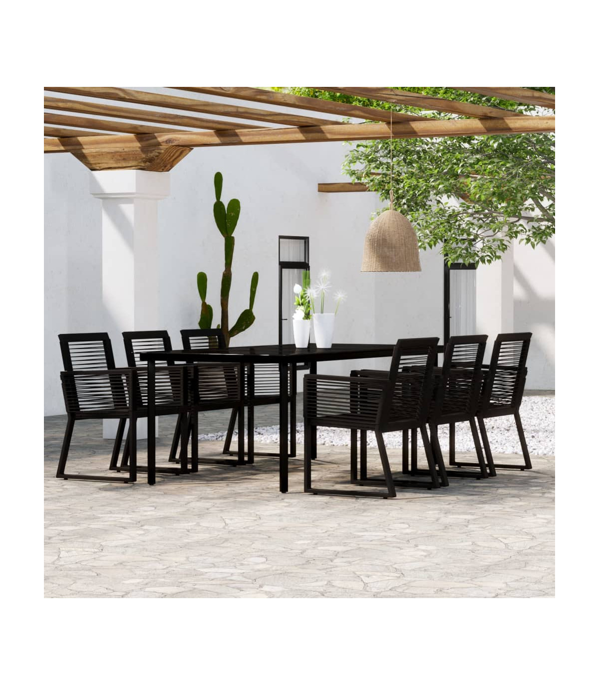 Create a compelling and cohesive aesthetic in your outdoor space with this garden dining set! This dinner table is made of a powder-coated steel frame, sturdy and stable for daily outdoor use. The smooth glass tabletop is easy to clean with a damp cloth and perfect for placing meals, drinks and other decorative items. The garden chairs are made of PVC rattan, woven over a fine lacquered steel frame, making them stable and resistant to poor weather and UV rays. Note: In order to extend the life of your outdoor furniture, we recommend you to clean it regularly and do not leave it outdoors without protection unnecessarily. Clean: Use a mild soap solution. Storing: If possible, store in a cool, dry place indoors. If the product is stored outdoors, protect it with a waterproof cover. Wipe and dry the excess water or snow from flat surfaces after a rain or snowfall. Allow sufficient air circulation to avoid moisture-related damage.