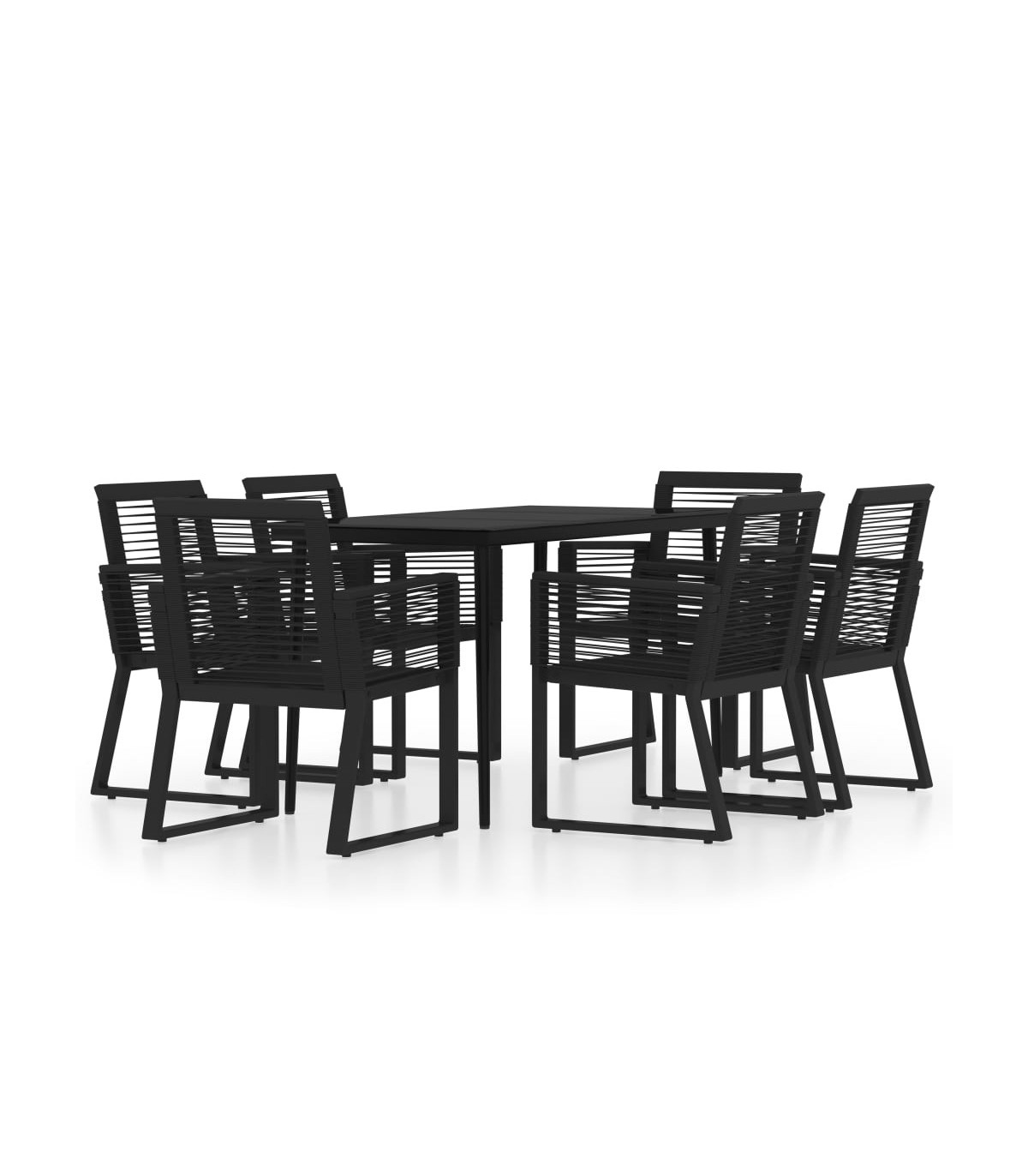 Create a compelling and cohesive aesthetic in your outdoor space with this garden dining set! This dinner table is made of a powder-coated steel frame, sturdy and stable for daily outdoor use. The smooth glass tabletop is easy to clean with a damp cloth and perfect for placing meals, drinks and other decorative items. The garden chairs are made of PVC rattan, woven over a fine lacquered steel frame, making them stable and resistant to poor weather and UV rays. Note: In order to extend the life of your outdoor furniture, we recommend you to clean it regularly and do not leave it outdoors without protection unnecessarily. Clean: Use a mild soap solution. Storing: If possible, store in a cool, dry place indoors. If the product is stored outdoors, protect it with a waterproof cover. Wipe and dry the excess water or snow from flat surfaces after a rain or snowfall. Allow sufficient air circulation to avoid moisture-related damage.