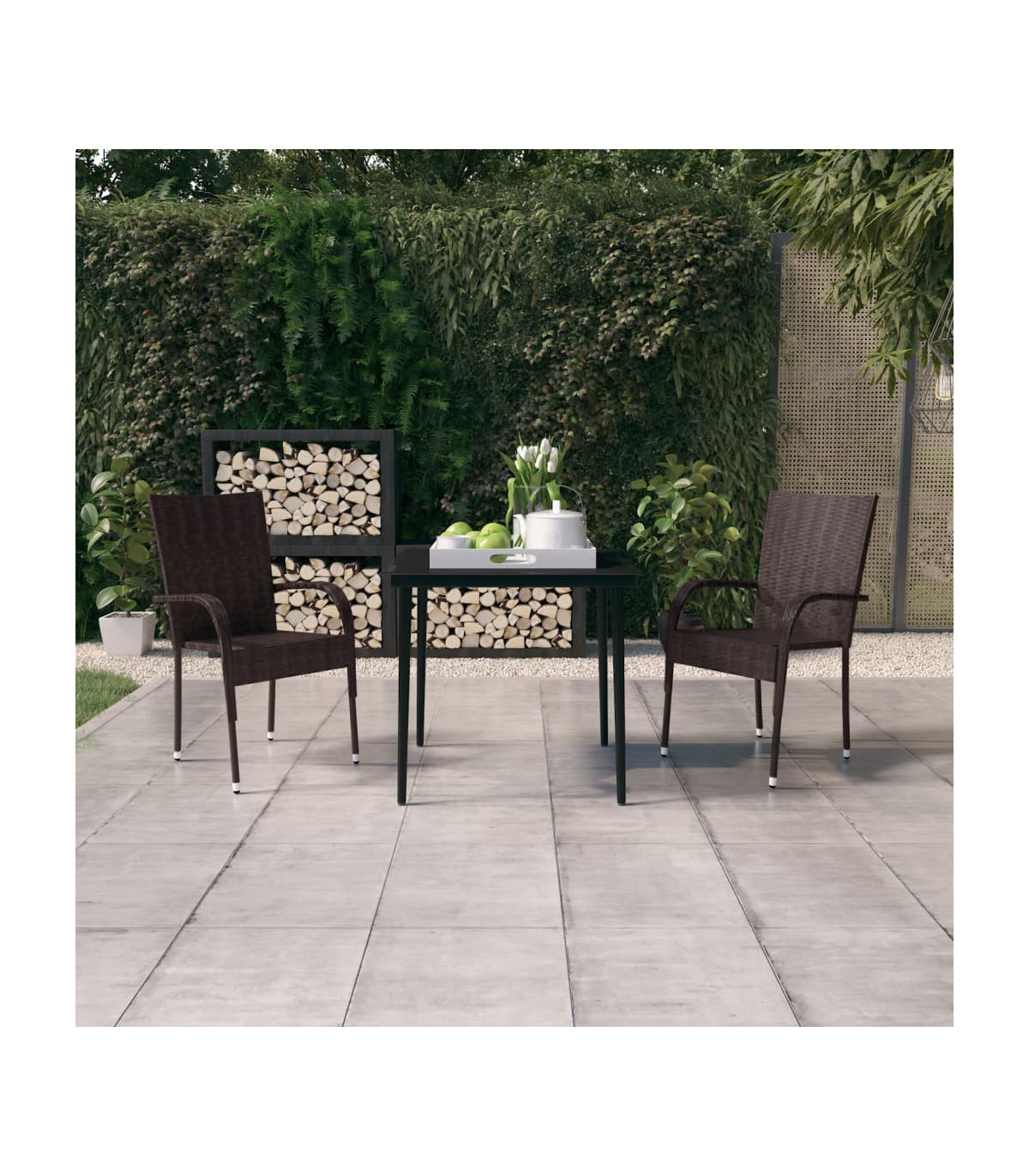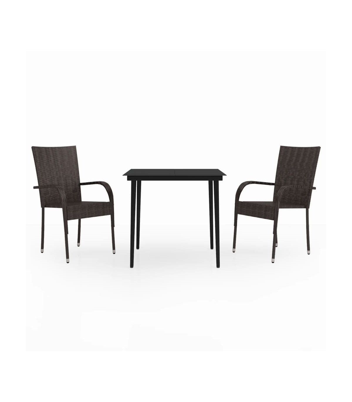 This garden dining set is a great choice for dining or relaxing in the outdoor space! Durable material: PE rattan, also known as poly rattan, is weather resistant and easy to clean. It remains beautiful on the outside for a long period of time. It offers great quality, convenience and an aesthetic look.Sturdy frame: The powder-coated steel frames make the outdoor dining set sturdy and stable for daily outdoor use.Practical tabletop: The smooth tabletop of the dining table is made of tempered glass which is easy to clean with a damp cloth. Additionally, the sturdy tabletop is perfect for placing meals, drinks, and other decorative items.Flexible design: Thanks to the lightweight construction, these outdoor chairs are easy to move and can be stacked to save space when not in use. Note:In order to extend the life of your outdoor furniture, we recommend you to protect it with a waterproof cover.Each product comes with an assembly manual in the box for easy assembly.