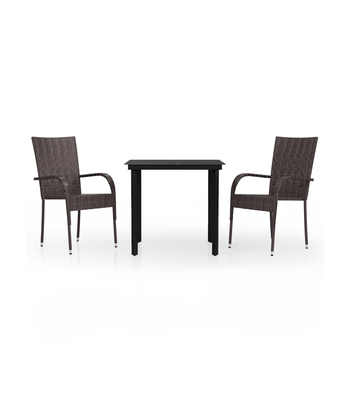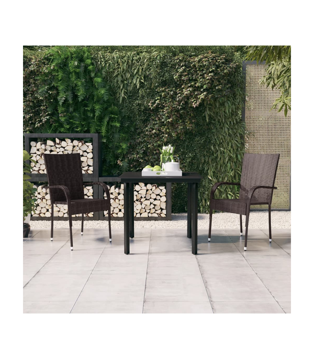 This garden dining set is a great choice for dining or relaxing in the outdoor space! Durable material: PE rattan, also known as poly rattan, is weather resistant and easy to clean. It remains beautiful on the outside for a long period of time. It offers great quality, convenience and an aesthetic look.Sturdy frame: The powder-coated steel frames make the outdoor dining set sturdy and stable for daily outdoor use.Practical tabletop: The smooth tabletop of the dining table is made of tempered glass which is easy to clean with a damp cloth. Additionally, the sturdy tabletop is perfect for placing meals, drinks, and other decorative items.Flexible design: Thanks to the lightweight construction, these outdoor chairs are easy to move and can be stacked to save space when not in use. Note:In order to extend the life of your outdoor furniture, we recommend you to protect it with a waterproof cover.Each product comes with an assembly manual in the box for easy assembly.