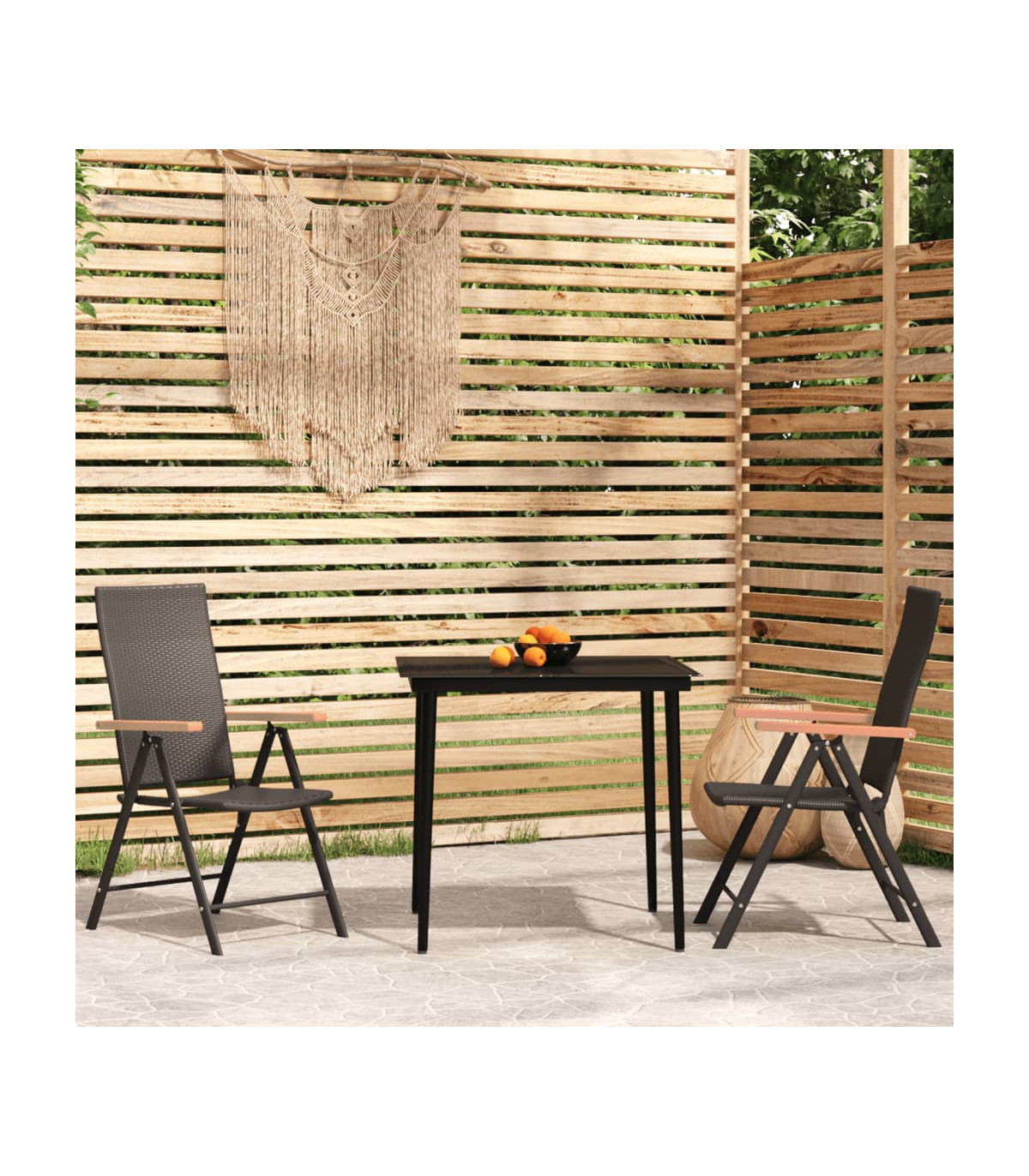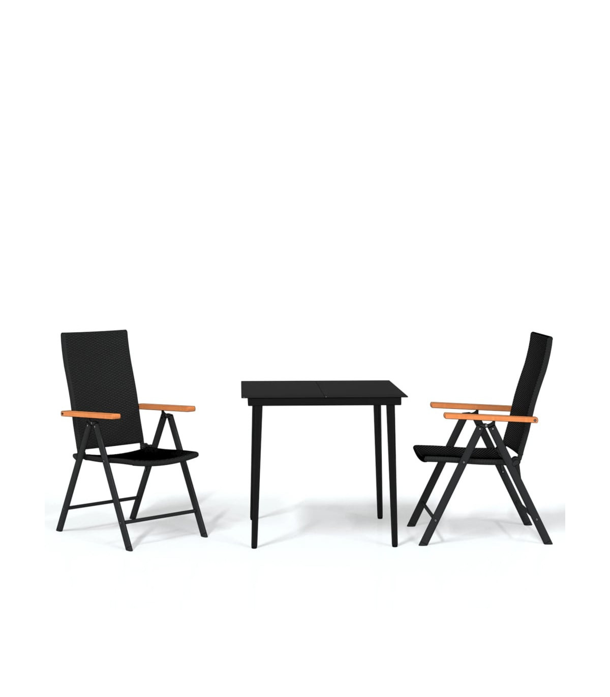 Create a compelling and cohesive aesthetic in your outdoor space with this garden dining set! Weather-resistant material: PE rattan, also known as poly rattan, is weather resistant and easy to clean. It remains beautiful on the outside for a long period of time. It offers great quality, convenience and an aesthetic look.Sturdy frame: The powder-coated steel frames make the outdoor dining set sturdy and stable for daily outdoor use.Practical tabletop: The smooth tabletop of the dining table is made of tempered glass which is easy to clean with a damp cloth. Additionally, the sturdy tabletop is perfect for placing meals, drinks, and other decorative items.Reclining and foldable design: The chairs' backrests feature 7 reclining settings, so you can always find the most comfortable seating position. Additionally, the garden chairs can be folded to save space when not in use. Note:In order to extend the life of your outdoor furniture, we recommend you to protect it with a waterproof cover.Each product comes with an assembly manual in the box for easy assembly.