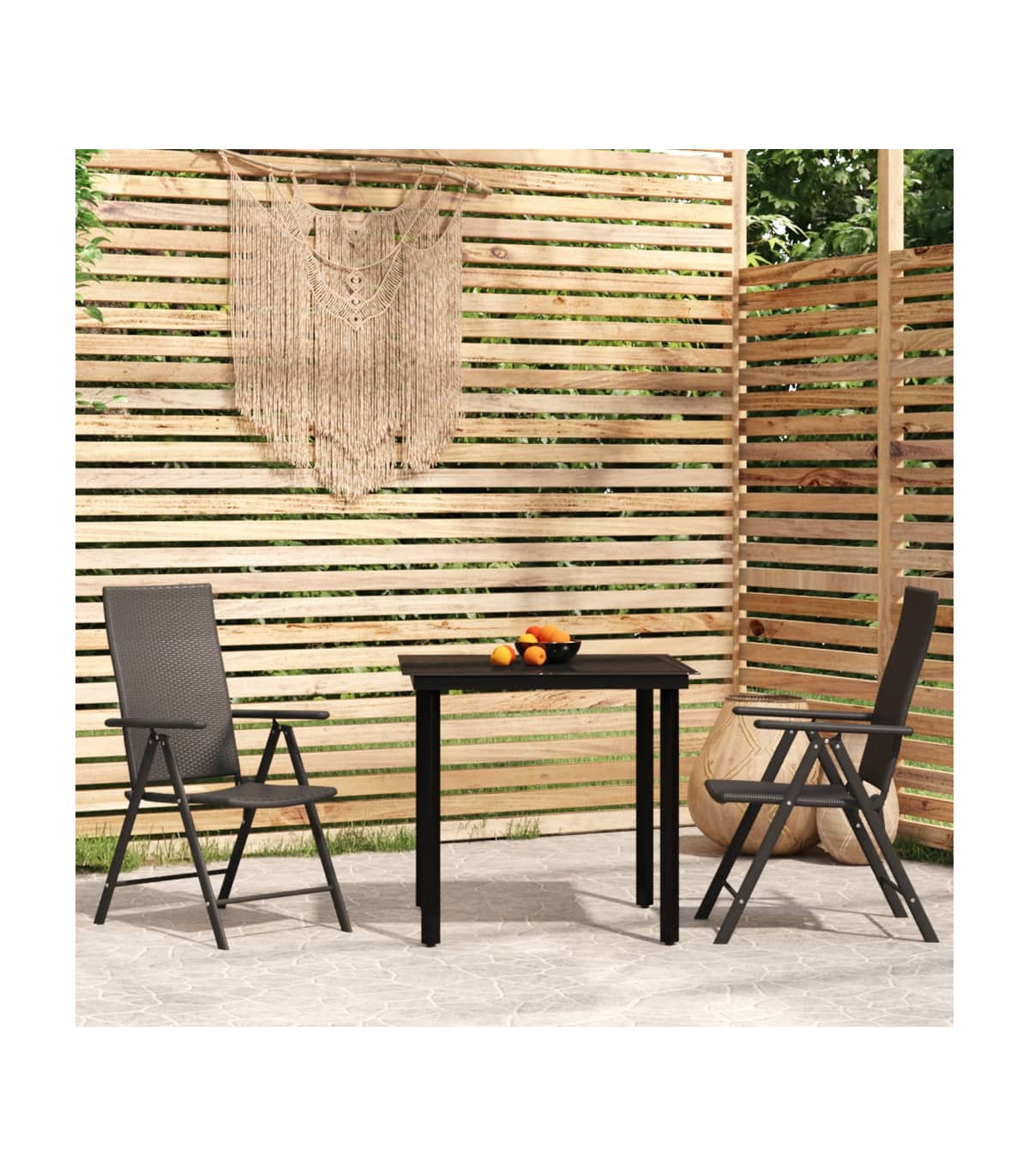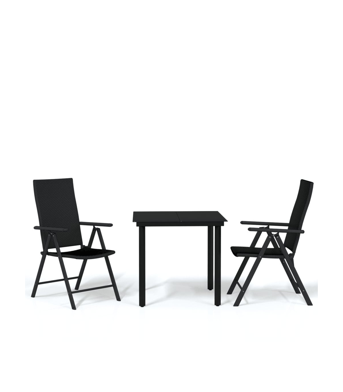 Create a compelling and cohesive aesthetic in your outdoor space with this garden dining set! Weather-resistant material: PE rattan, also known as poly rattan, is weather resistant and easy to clean. It remains beautiful on the outside for a long period of time. It offers great quality, convenience and an aesthetic look.Sturdy frame: The powder-coated steel frames make the outdoor dining set sturdy and stable for daily outdoor use.Practical tabletop: The smooth tabletop of the dining table is made of tempered glass which is easy to clean with a damp cloth. Additionally, the sturdy tabletop is perfect for placing meals, drinks, and other decorative items.Reclining and foldable design: The chairs' backrests feature 7 reclining settings, so you can always find the most comfortable seating position. Additionally, the garden chairs can be folded to save space when not in use. Note:In order to extend the life of your outdoor furniture, we recommend you to protect it with a waterproof cover.Each product comes with an assembly manual in the box for easy assembly.