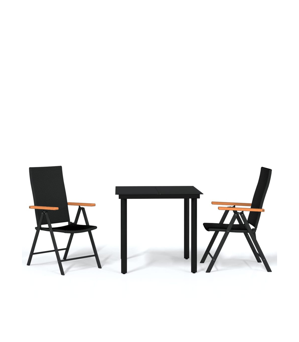 Create a compelling and cohesive aesthetic in your outdoor space with this garden dining set! Weather-resistant material: PE rattan, also known as poly rattan, is weather resistant and easy to clean. It remains beautiful on the outside for a long period of time. It offers great quality, convenience and an aesthetic look.Sturdy frame: The powder-coated steel frames make the outdoor dining set sturdy and stable for daily outdoor use.Practical tabletop: The smooth tabletop of the dining table is made of tempered glass which is easy to clean with a damp cloth. Additionally, the sturdy tabletop is perfect for placing meals, drinks, and other decorative items.Reclining and foldable design: The chairs' backrests feature 7 reclining settings, so you can always find the most comfortable seating position. Additionally, the garden chairs can be folded to save space when not in use. Note:In order to extend the life of your outdoor furniture, we recommend you to protect it with a waterproof cover.Each product comes with an assembly manual in the box for easy assembly.
