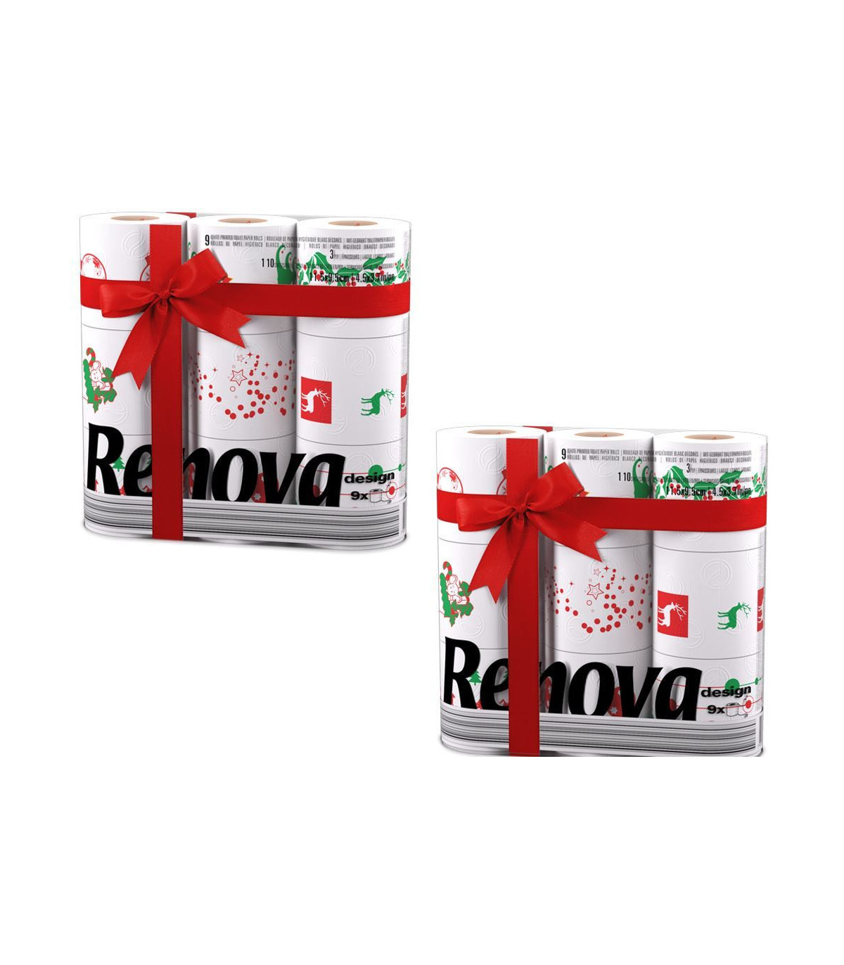 SEASON GREETINGS - Keep things cool at your next holiday gathering. There's no better indication of the holiday season than these festively packaged Xmas toilet rolls. UNIQUE DESIGN - A different illustration on every roll inside each single pack. MATERIAL & QUALITY - Very soft and absorbent. 3 ply bathroom tissue. 100% virgin pulp. 110 sheets per roll PACK SIZE - 9 rolls in a pack DIMENSIONS - Roll Size: 9.5 x 9.5 cm. Each sheet is L 11.5 x H 9.5 cm