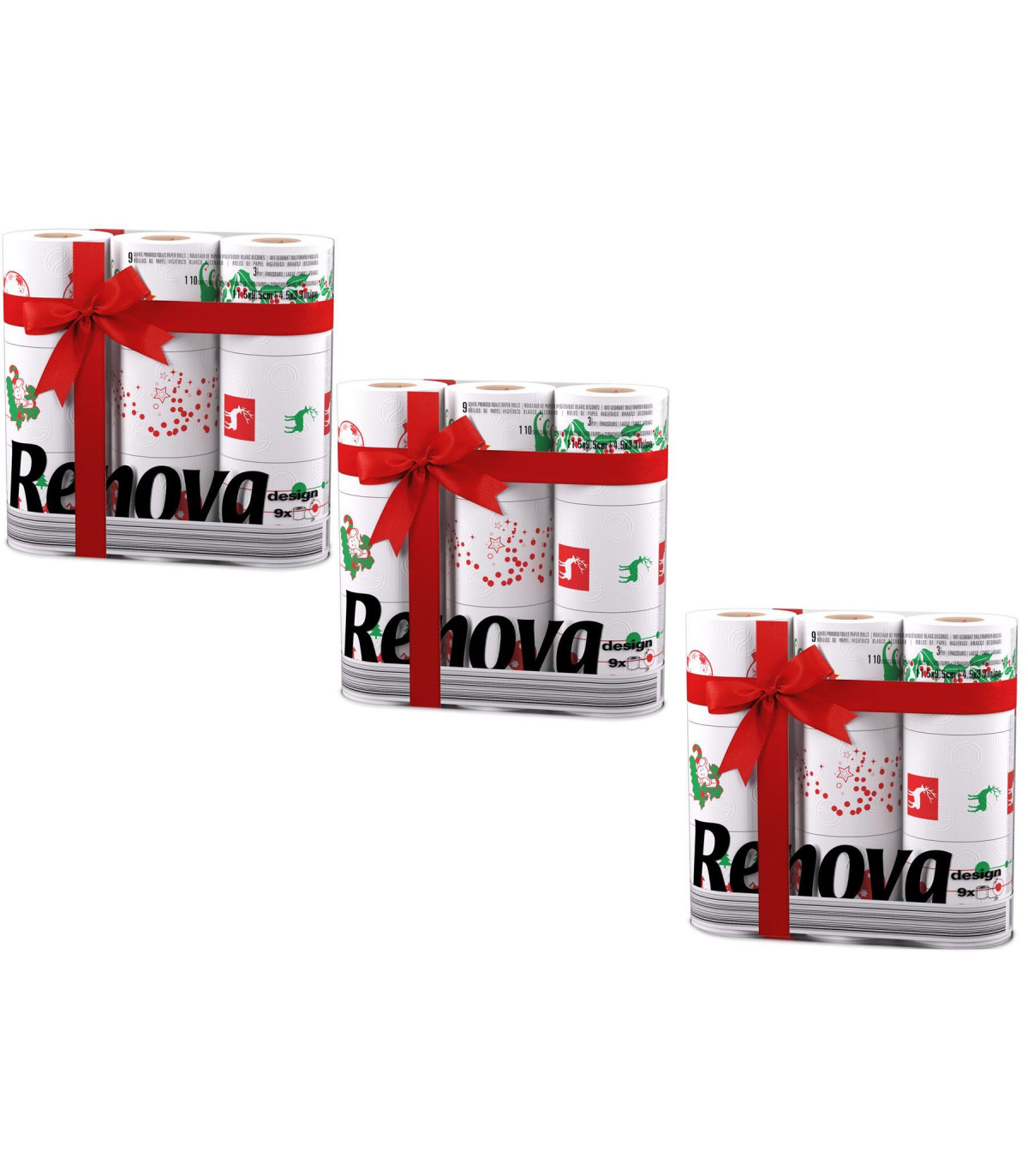 Renova White Print 2 Ply Christmas Xmas Toilet Tissue Paper Rolls (27 Rolls)
