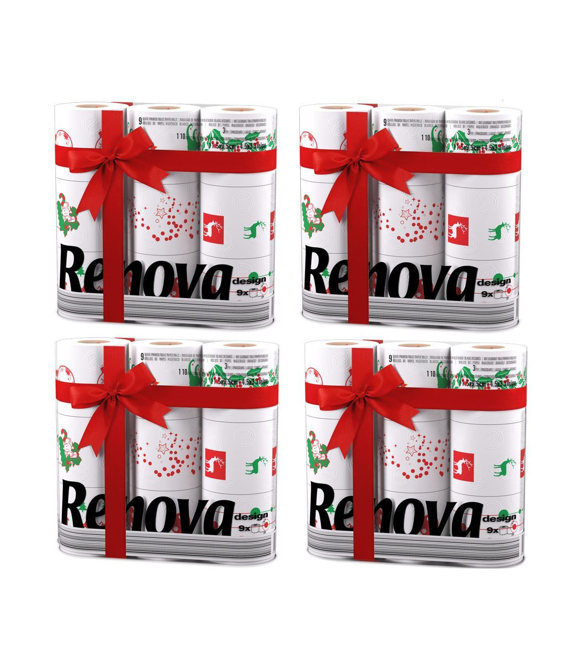 Renova 2 Ply Christmas Print Xmas Absorbent Toilet Tissue Paper 36 Rolls - White
