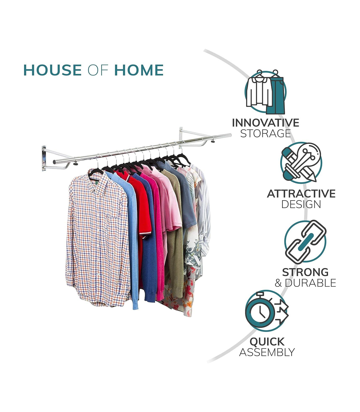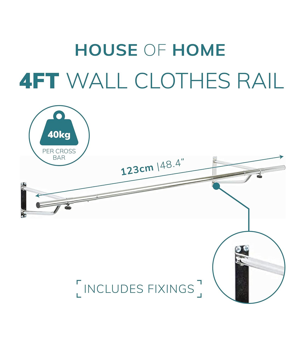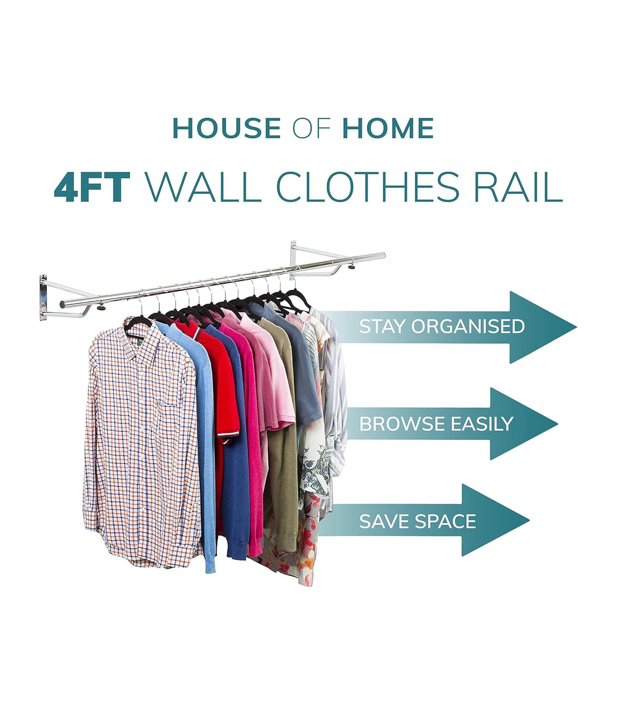 The wall mounted clothing rails are perfect for organising your bedroom, walk in wardrobes or even in clothes shops. They are great for hanging all types of clothing including heaver items like coats and jackets. Made from steel and finished in black powder coating. Rail length: 4ft Tube diameter: 25mm Brackets - 32cm depth x 15.5cm height x 3cm width Comes with fixings and fixtures with full set of easy to assemble instructions.