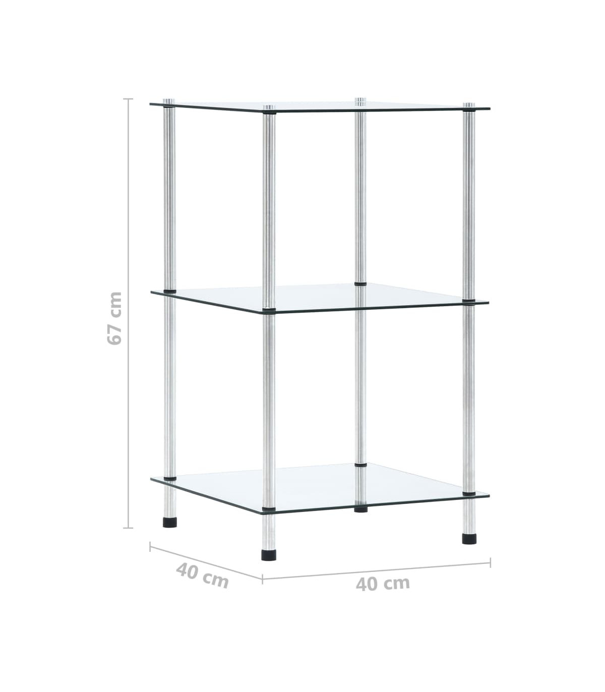 vidaXL 3-Tier Shelf Transparent 40x40x67 cm Tempered Glass
