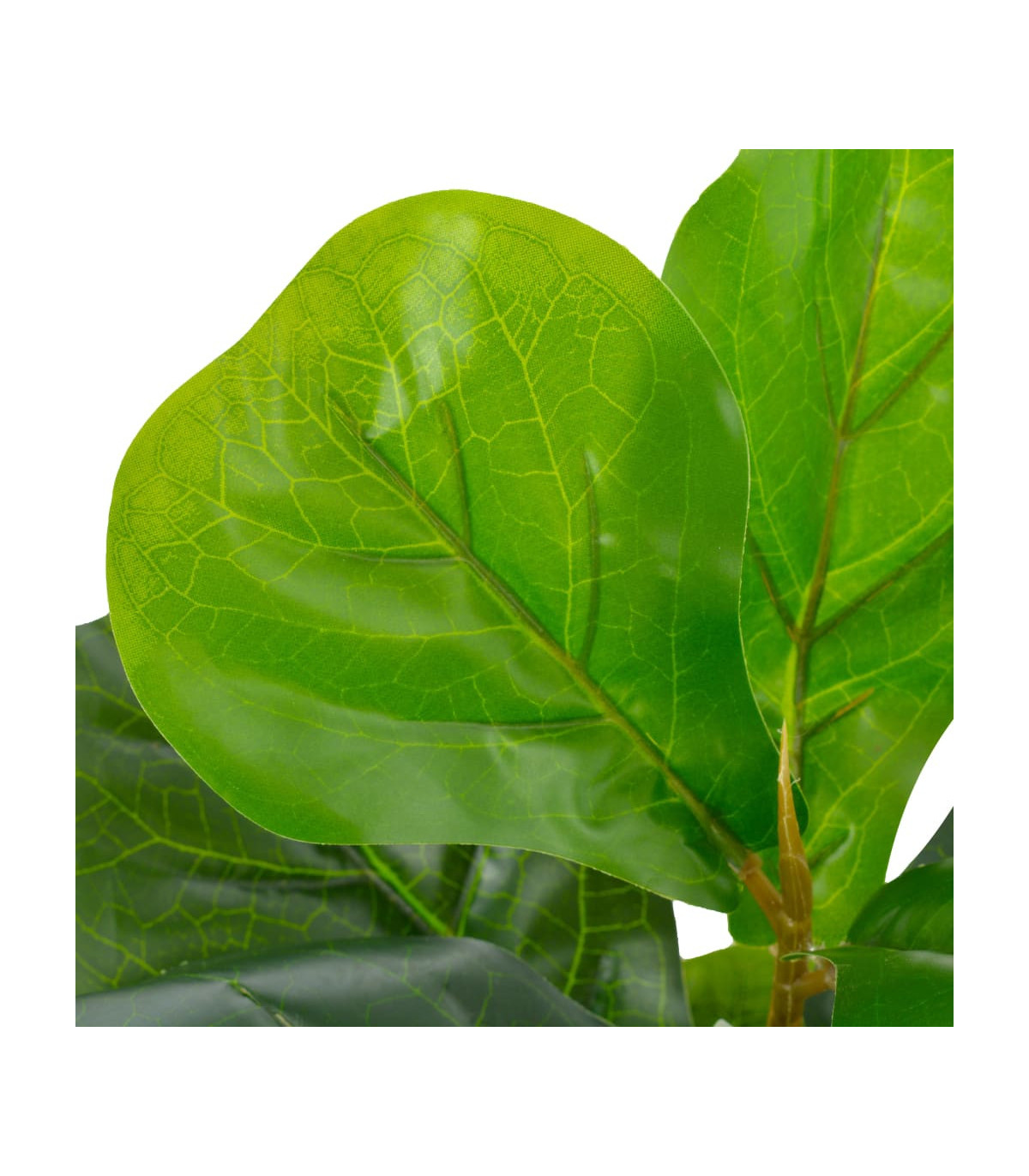 Add some greenery to your interior with this lifelike artificial fiddle leaves. The fiddle leaves plant is 45 cm high and will be a great choice for your home or office interior. The plant has leaves with perfect details, giving it a full, realistic look, and it will never wither. Additionally, the leaves have slight colour variations for a authentic look and feel. This decorative artificial plant is ideal for those who do want to have some plants in their home but lack the time to care for them. Delivery includes 1 artificial plant and 1 pot.