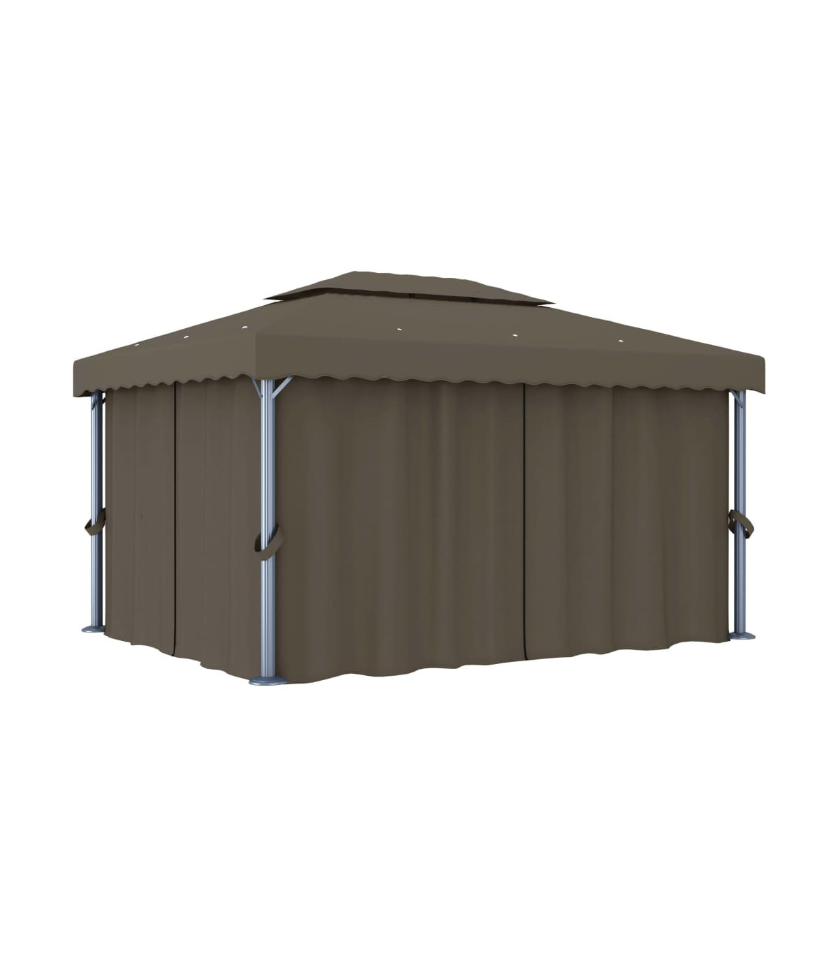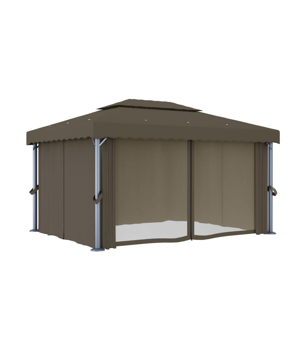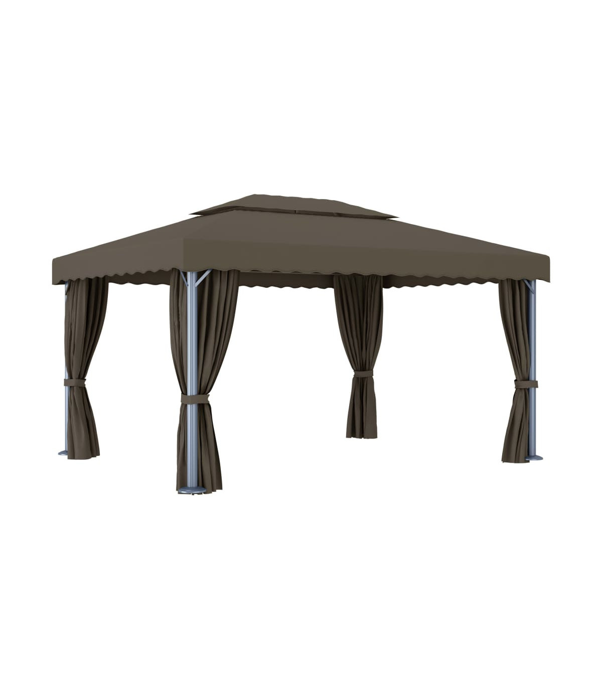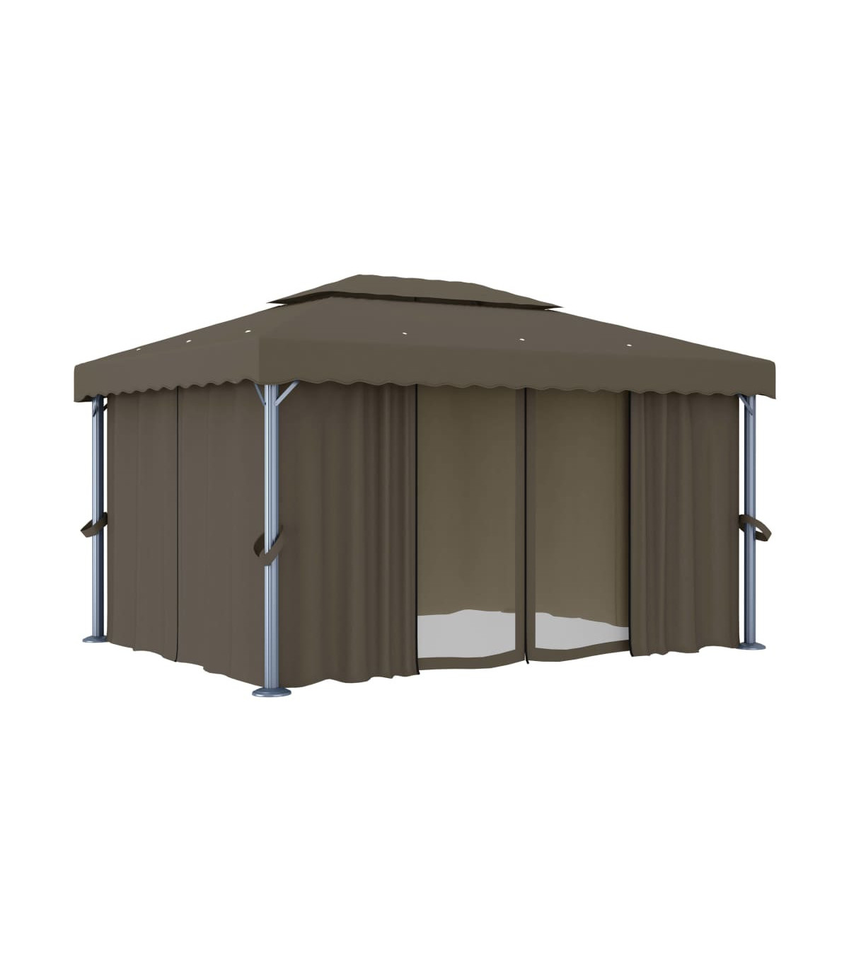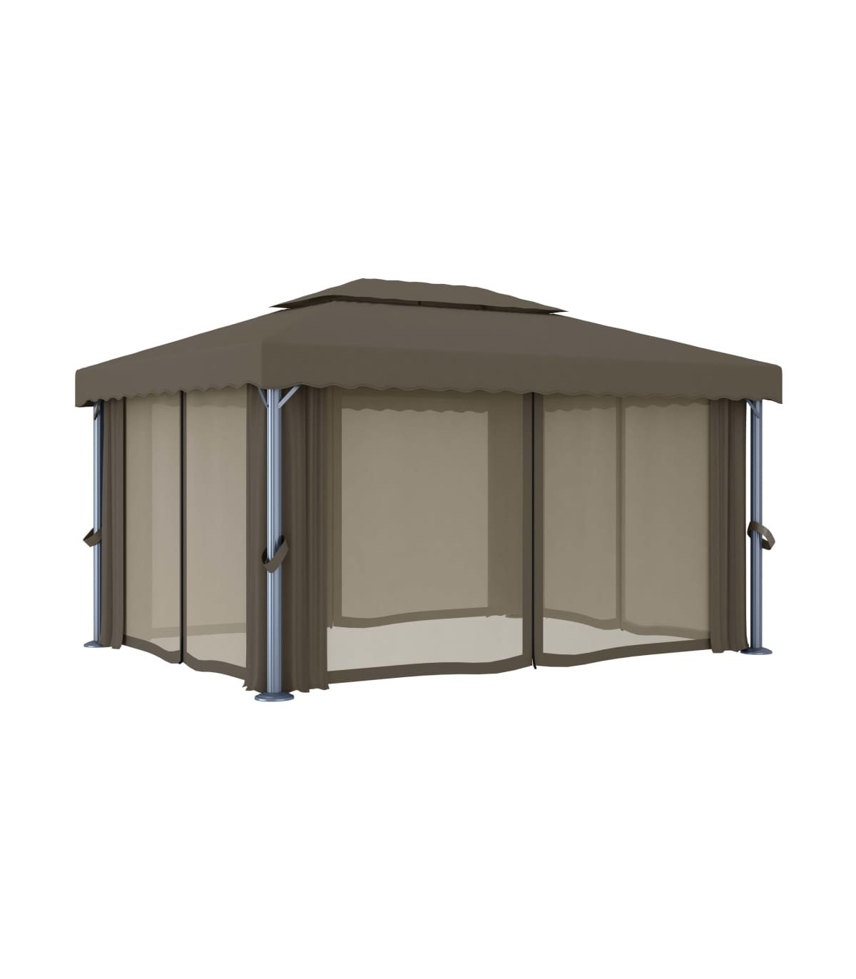 This stylish gazebo will surely turn your yard into a sophisticated and functional focal point! It is designed to provide a cool place for outdoor parties, family picnics, backyard barbecues and other social gatherings. It is constructed with aluminium pole and powder-coated steel supporting tube, which ensures superior sturdiness and durability. The canopy and side walls are made of quality polyester fabric with PA coating, protecting you against harmful rays and mild rain. A well-designed 2-tier roof ensures ample airflow underneath. Additionally, the curtains and mesh screens are included for full protection, giving you added privacy while keeping annoying mosquitoes and other insects away. Hooks and loop fasteners are included for easy attachment. NOTE: This product should NEVER be used under bad weather, such as strong wind, heavy rain, snow, storm, etc.