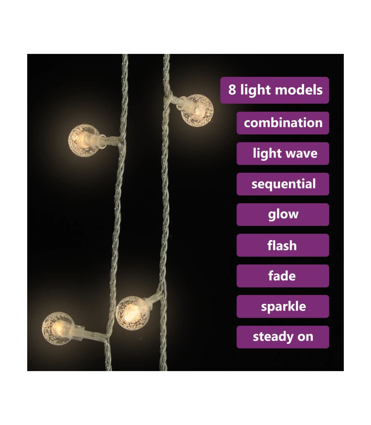 This fairy string light is perfect for use as a lighting addition to any decorative project. It is suitable for Christmas, parties, weddings and other holidays. The string light is equipped with 200 energy-saving LEDs, creating a magical lighting performance. It has 8 different lighting effects; combination mode, waves, sequential mode, slowly glowing mode, flashing, slowly fading mode, twinkling and continuous lighting. It is a great decorative accessory to illuminate indoor and outdoor spaces. Note: The included USB is not waterproof so this part has to avoid the water, but thanks to the 3m cable the Christmas decoration can be used outdoors as the cable and product are waterproof. The product has a USB connector, but the certified 5V USB power source is not included.