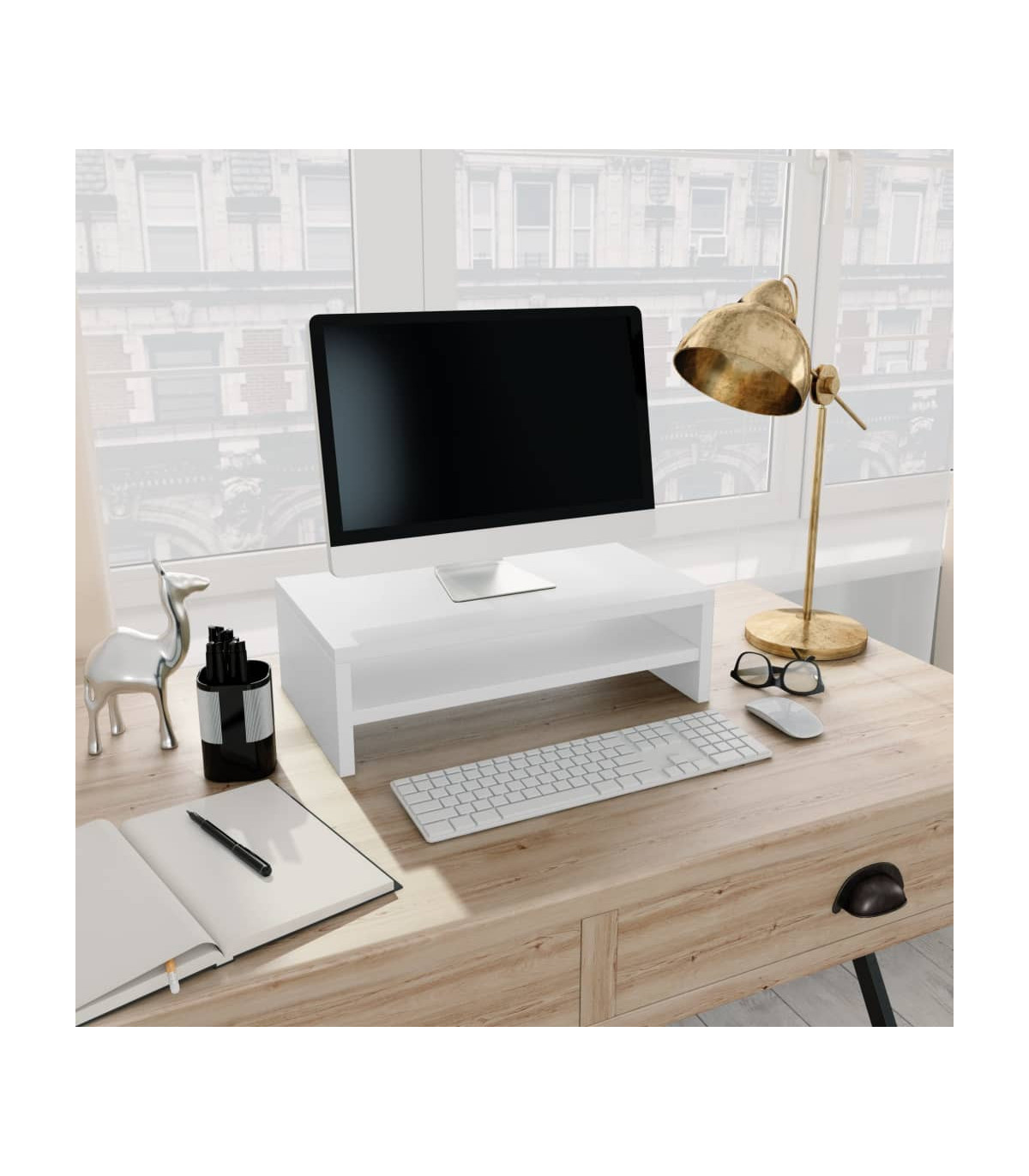 Monitor Stand White 42x24x13 cm Chipboard