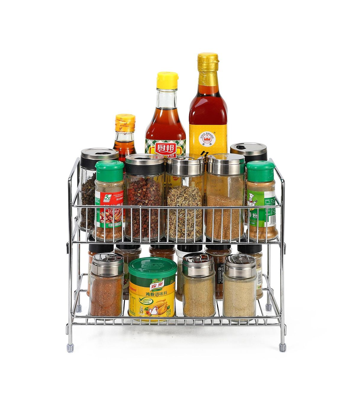 DURABLE & STABLE: This spice rack is made of solid steel and has an anti-rust coating. The rubber feet prevent the rack from sliding and ensure that the spice feet will not scratch the countertop or tip over. The free-standing design can be used in on any countertops, bathroom shelf, or windowsill.