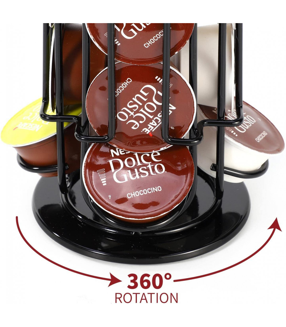 REVOLVING FEATURE: The swivel-style base of the coffee pod holder turns subtly and smoothly with a simple turn. The swivel design allows for quick access to your favourite blend while also making choosing enjoyable.