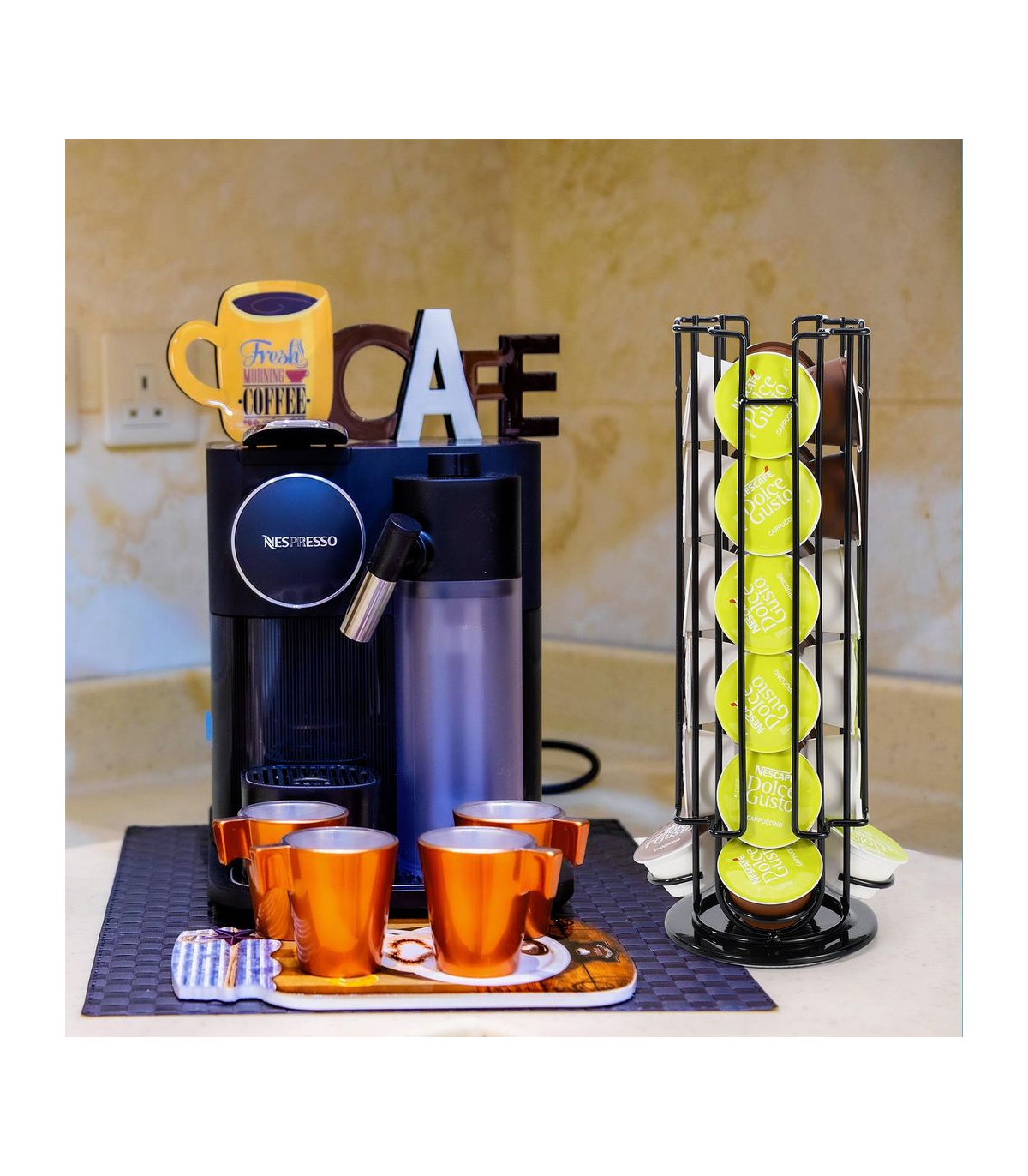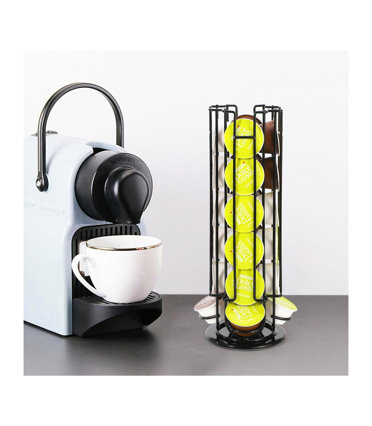 ELEGANT & DURABLE: This coffee capsule holder is made of strong metal wire for long-lasting sturdiness and rust resistance. Vinsani Coffee pod holder is a centrepiece in and of itself, with an elegant sleek finish. Place it next to your Dolce Gusto coffee machine to give your kitchen a new flair.