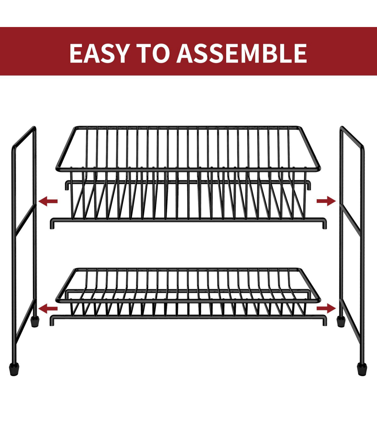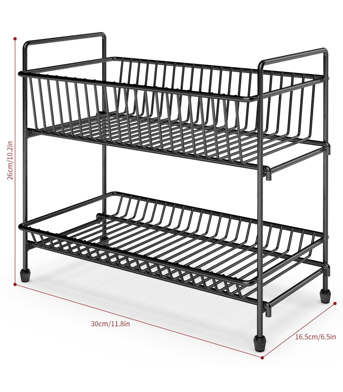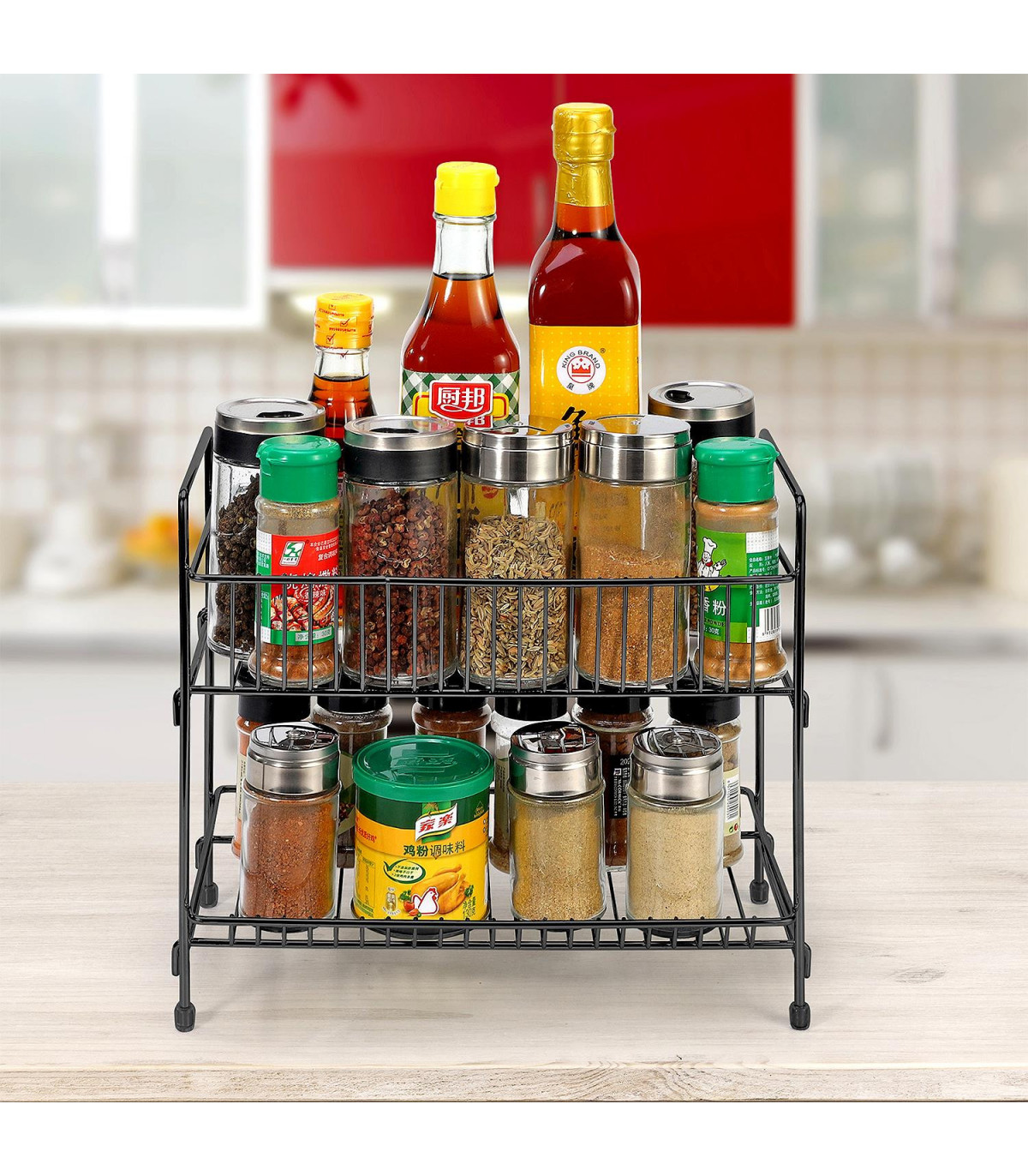 SPACE SAVER: Our 2-tier free-standing spice rack organiser measures 26 x 30 x 16.5 cm approx. (10.2 x 11.8 x 6.5 in) makes it an ideal choice as your organiser solution as it creates more space and makes your house orderly and tidy. Perfect for organizing anywhere in your kitchen, bathroom, cabinets, countertops, pantries, cupboard, fridge. STYLISH DESIGN: Adding a minimalist touch to your spice collection is the practical, elegant, and modern design of this spice rack. DURABLE & STABLE: This spice rack is made of solid steel and has an anti-rust coating. The rubber feet prevent the rack from sliding and ensure that the spice feet will not scratch the countertop or tip over. The free-standing design can be used in on any countertops, bathroom shelf, or windowsill. STORE ANYTHING: Wide capacity storage, excellent for holding all condiment bottles, spice & herb jars, drinks, snacks, fruits, make-ups, and other accessories. EASY TO ASSEMBLE: The spice rack comes with all of the necessary tools and accessories, making it easier to assemble the spice rack by following the detailed assembly instructions and numbered parts.