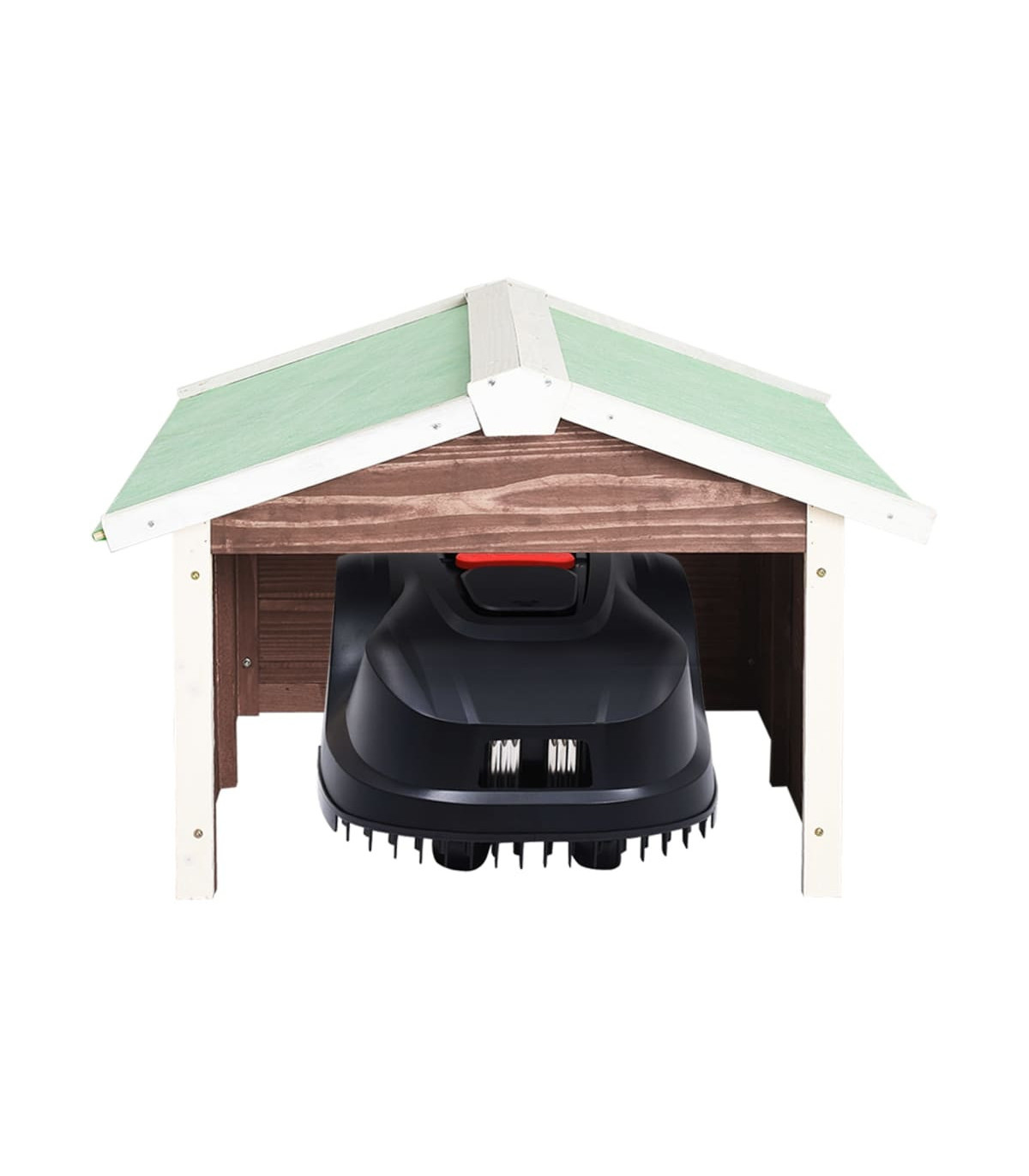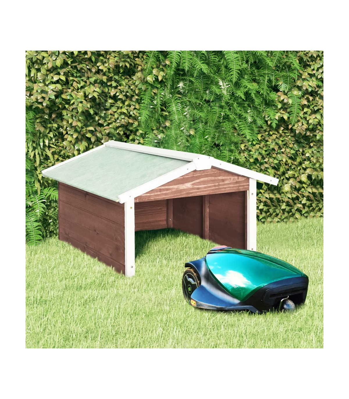 Robotic Lawn Mower Garage 72x87x50 cm Mocca and White Firwood