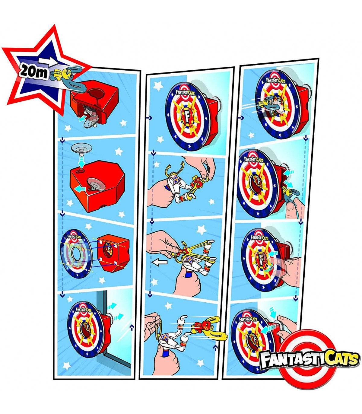 - Contains 1x target box, 2x super slingers and 6x Fantasticats