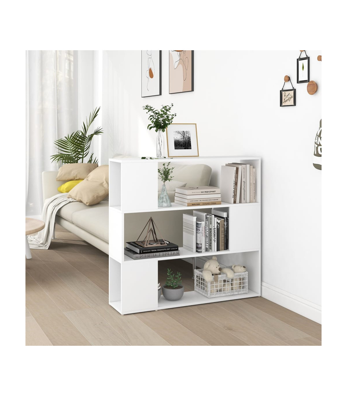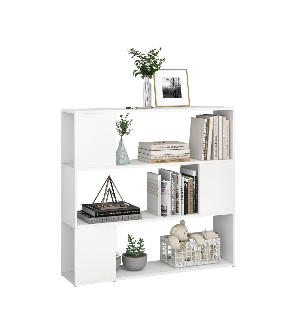 This classic book cabinet, featuring a sleek design, makes a decorative as well as practical addition to your current decor. Durable material: The engineered wood is of exceptional quality with smooth surface and also features strength, stability and resistance to moisture.Ample storage space: The bookshelf is designed with 3 spacious compartments, offering ample storage space for keeping your magazines, books, DVDs, multimedia devices and other decorative items well organised and within reach.Versatile shelf: The book stand can serve as a room divider as well, making it a perfect choice for your living space.Easy-to-clean surface: The bookcase is easy to clean with a damp cloth. Warning:To prevent it being overturned, this product must be used with the provided wall attachment device. Good to know:To make assembly as easy as possible, each product is delivered with a manual.