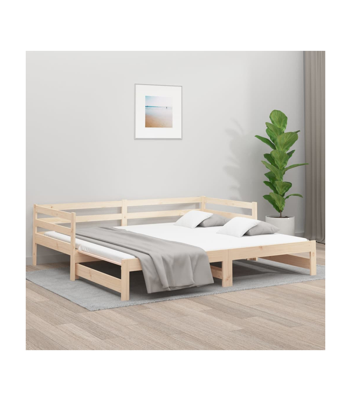 Pull-out Day Bed 2x(80x200) cm Solid Wood Pine