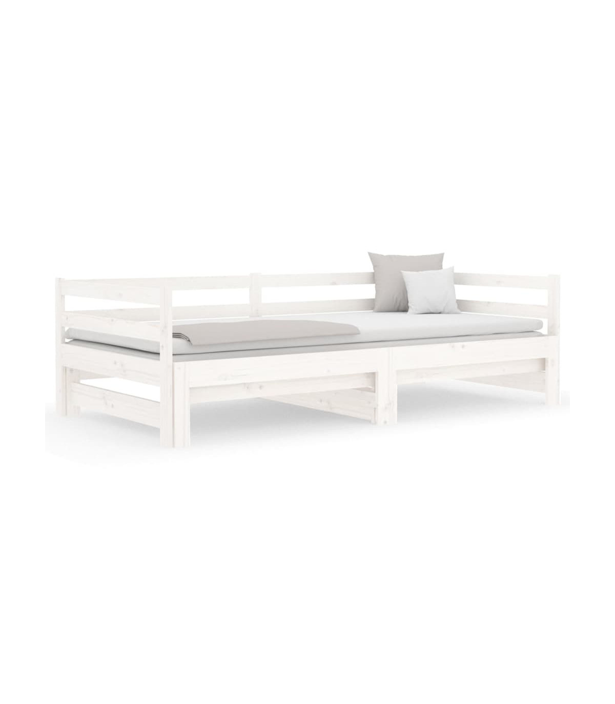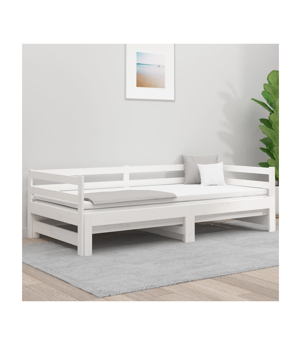 Pull-out Day Bed White 2x(80x200) cm Solid Wood Pine