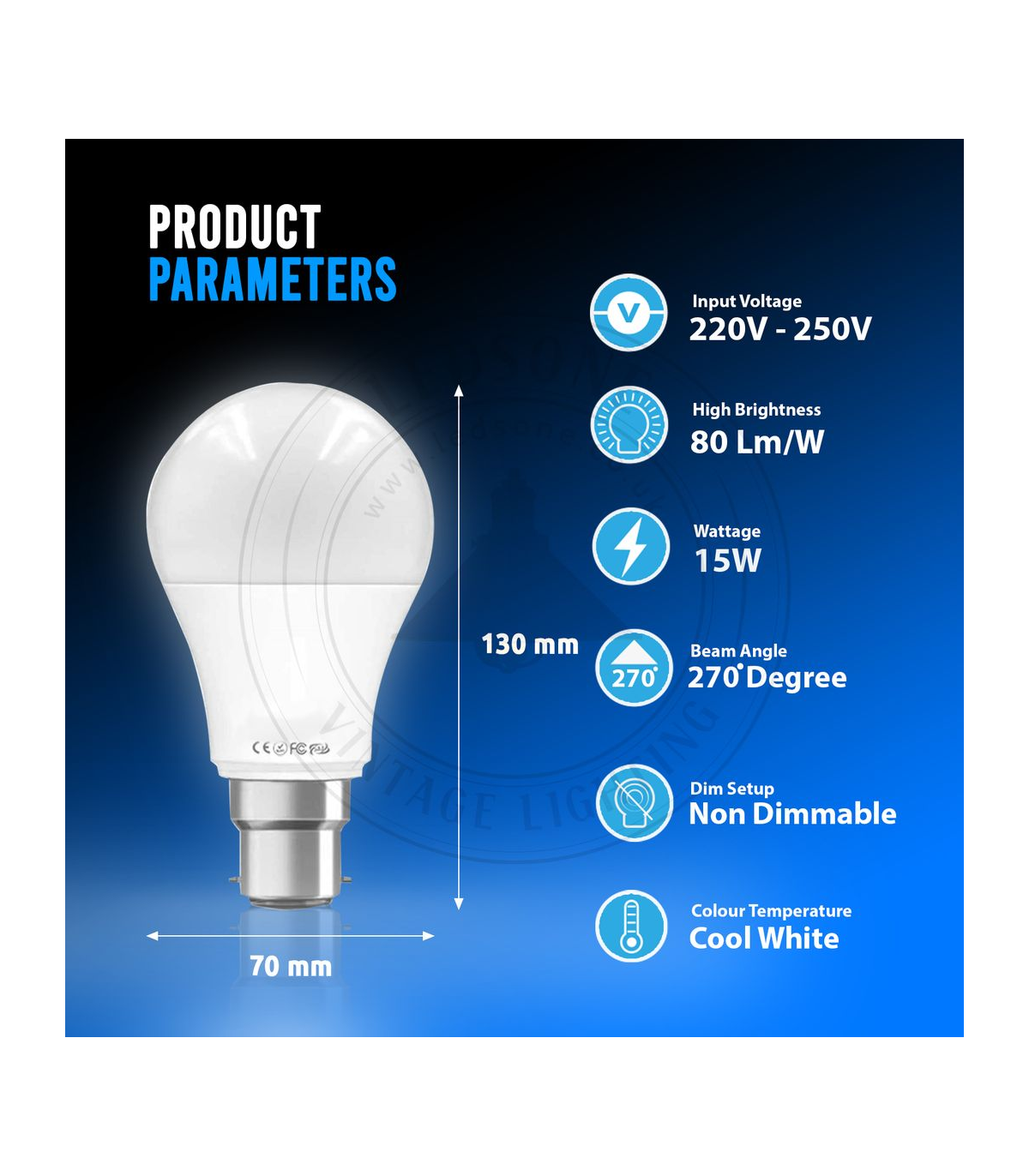 10 Pack 15W B22 Screw LED Light GLS bulbs, Energy Saving Edison Cool White 6000K non dimmable lights