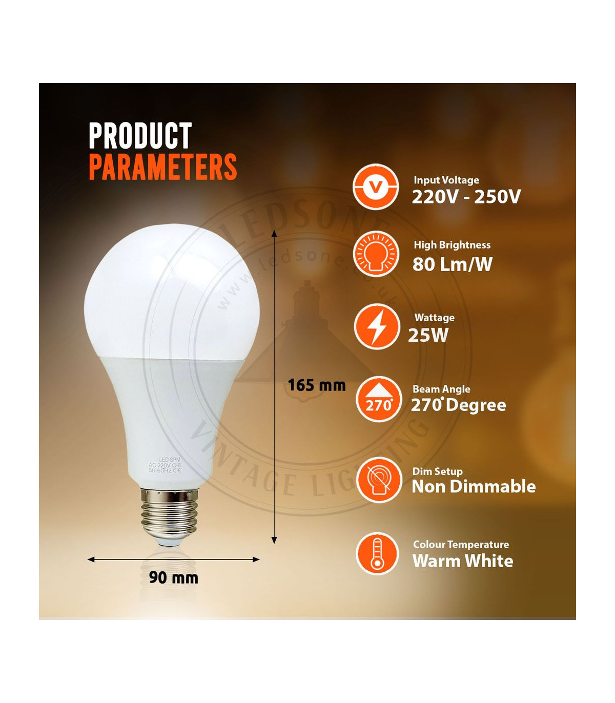 E27 25W Energy Saving Warm White LED Light Bulbs A60 E27 Screw-in non dimmable bulbs-pack 2