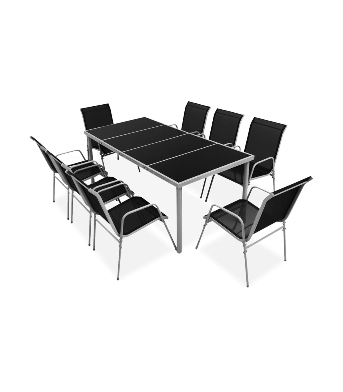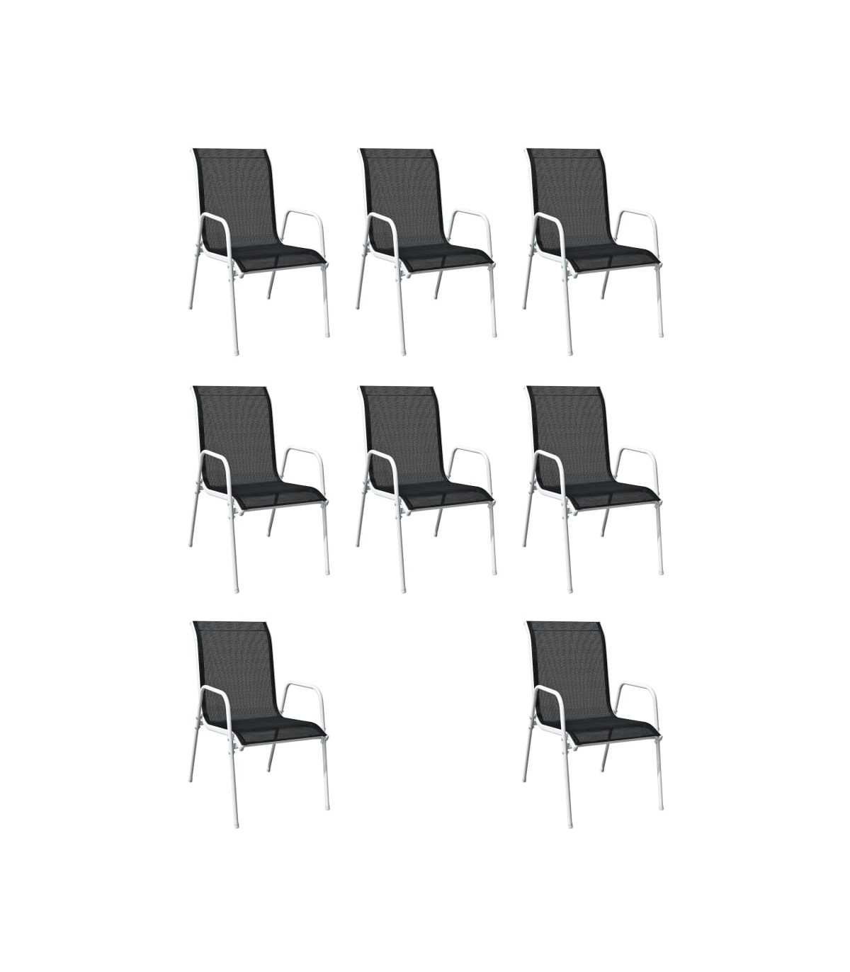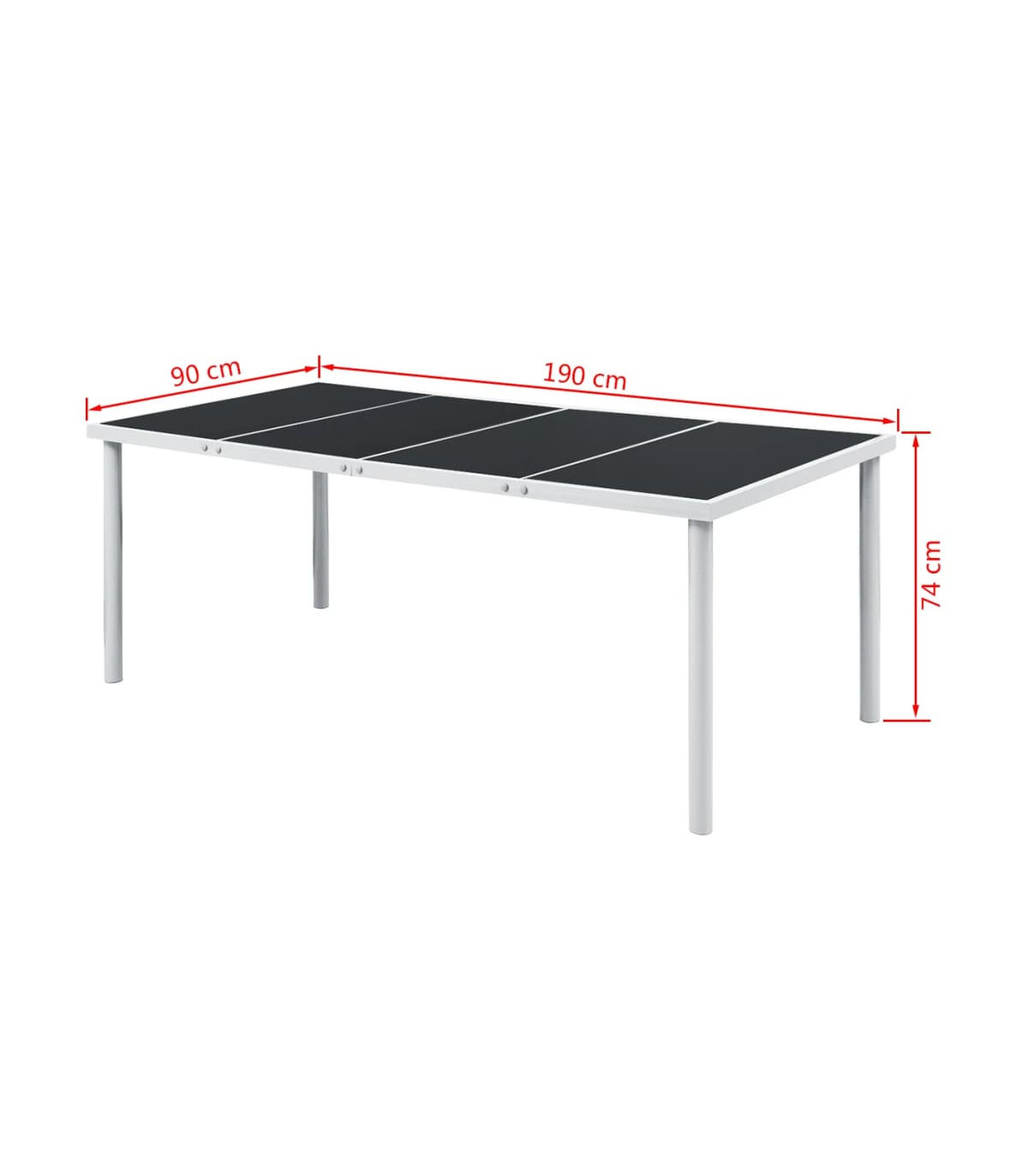 This outdoor dining set contains 1 table with glass top, and 6 textilene chairs. With a stylish design and a durable steel frame, our dining furniture set is a perfect choice for your outdoor living space. The simple elegance of this dining set will make everyday dinners special. This garden dining set features a powder-coated steel frame, which makes the table and chairs stable and durable. The comfortable dining chairs are upholstered in strong and easy-to-clean textilene fabric. The chairs are also stackable to save space when not in use. Delivery includes 1 table with a glass top and 6 high-quality textilene chairs.