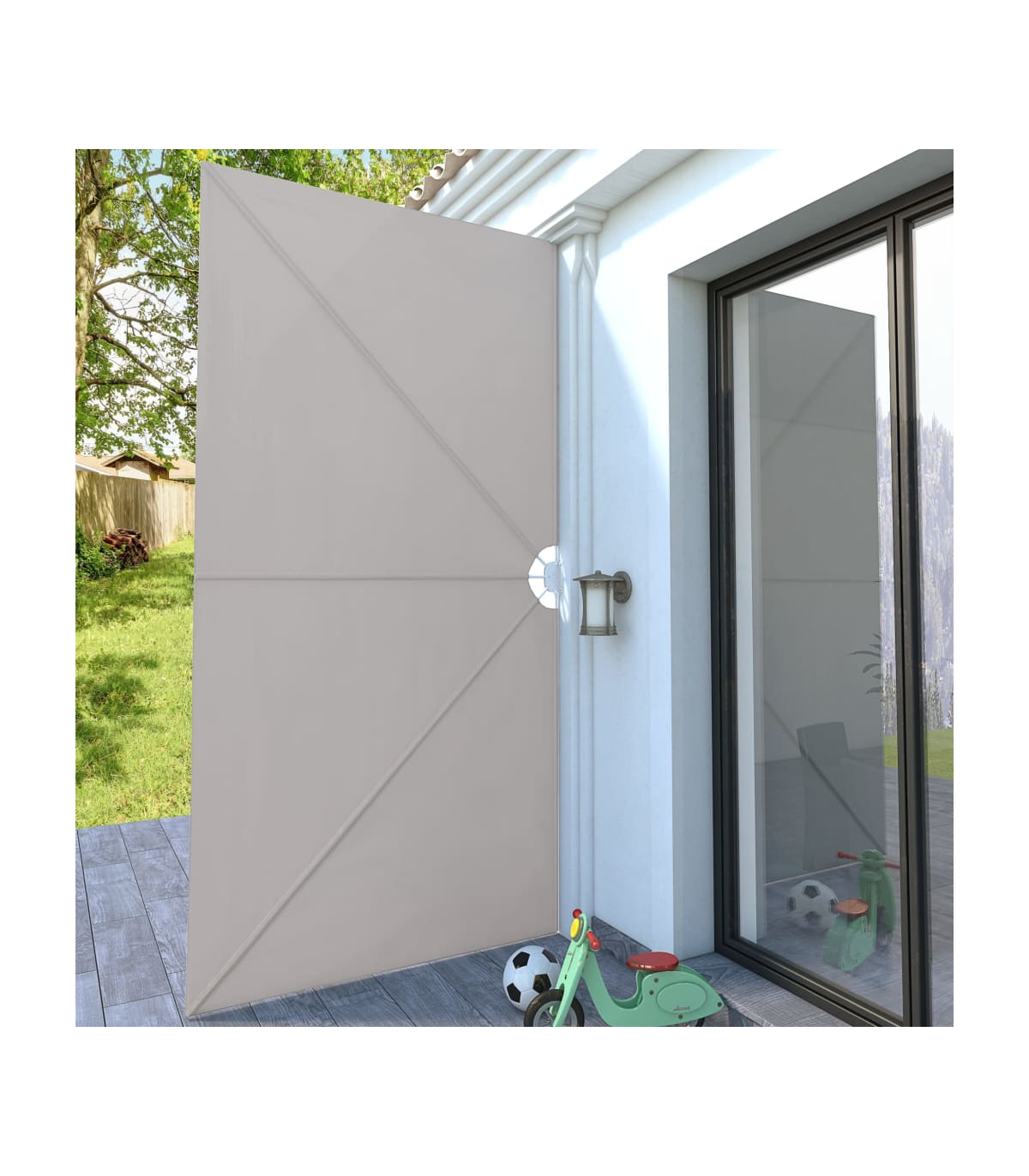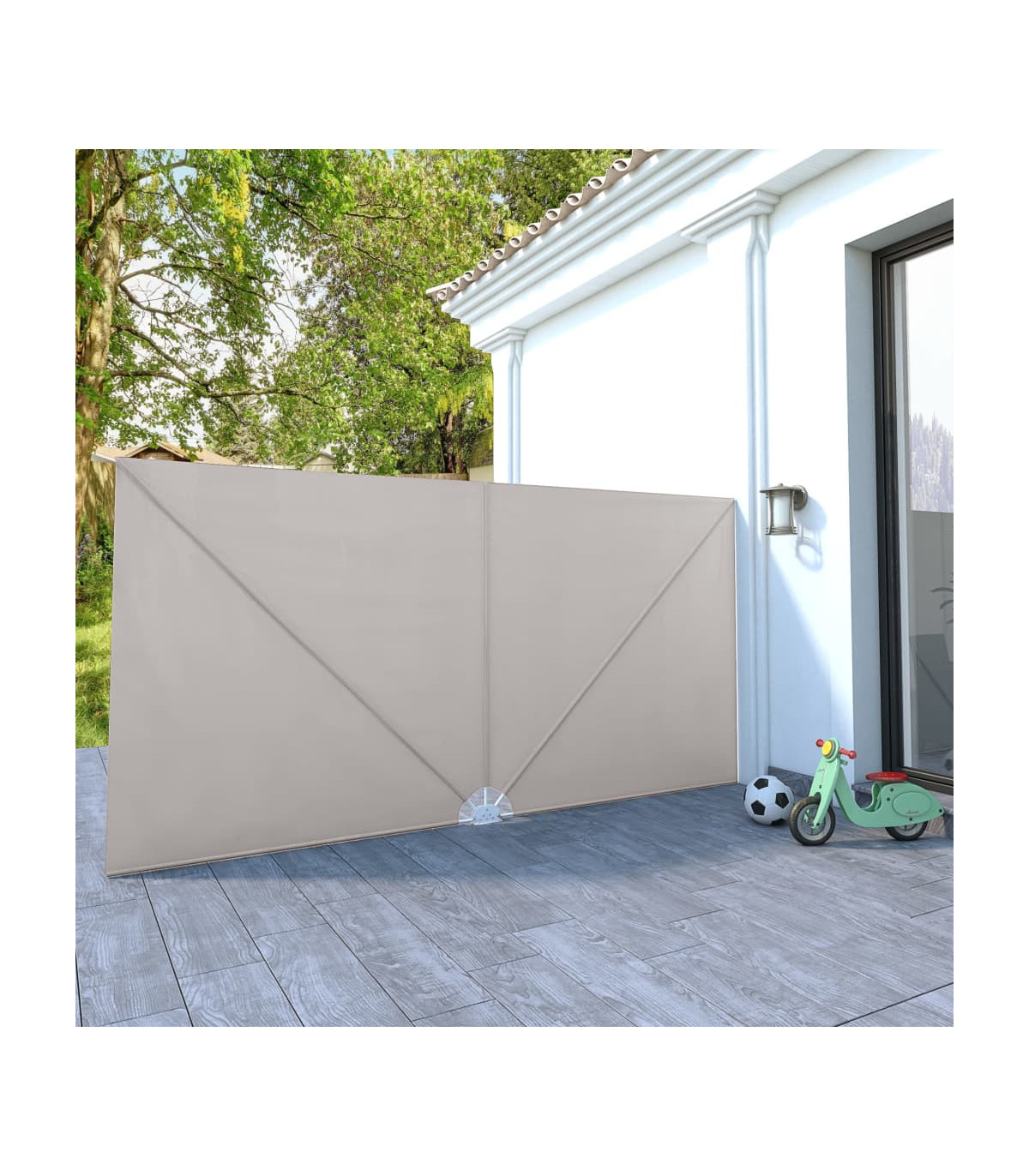 This collapsible side awning will be ideal for use on the terrace, balcony or in your garden to provide shade. Made of hard-wearing polyester, this terrace awning is water- and dirt repellent and UV- and weather resistant. The strong powder-coated steel frame makes the garden awning sturdy and durable. Thanks to the folding design, this terrace privacy fence can be folded easily when not in use to save space. Thanks to the wall bracket, this balcony windscreen can be mounted onto the wall easily. This unique sunshade is not only highly convenient but also makes a bold visual statement, and it will be the perfect choice for your outdoor space!