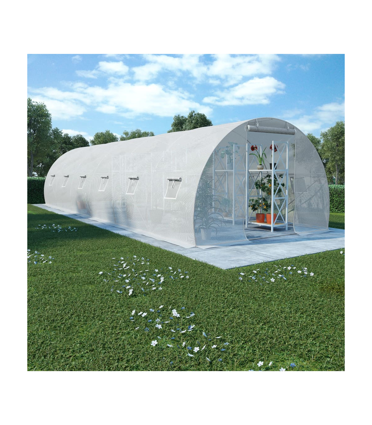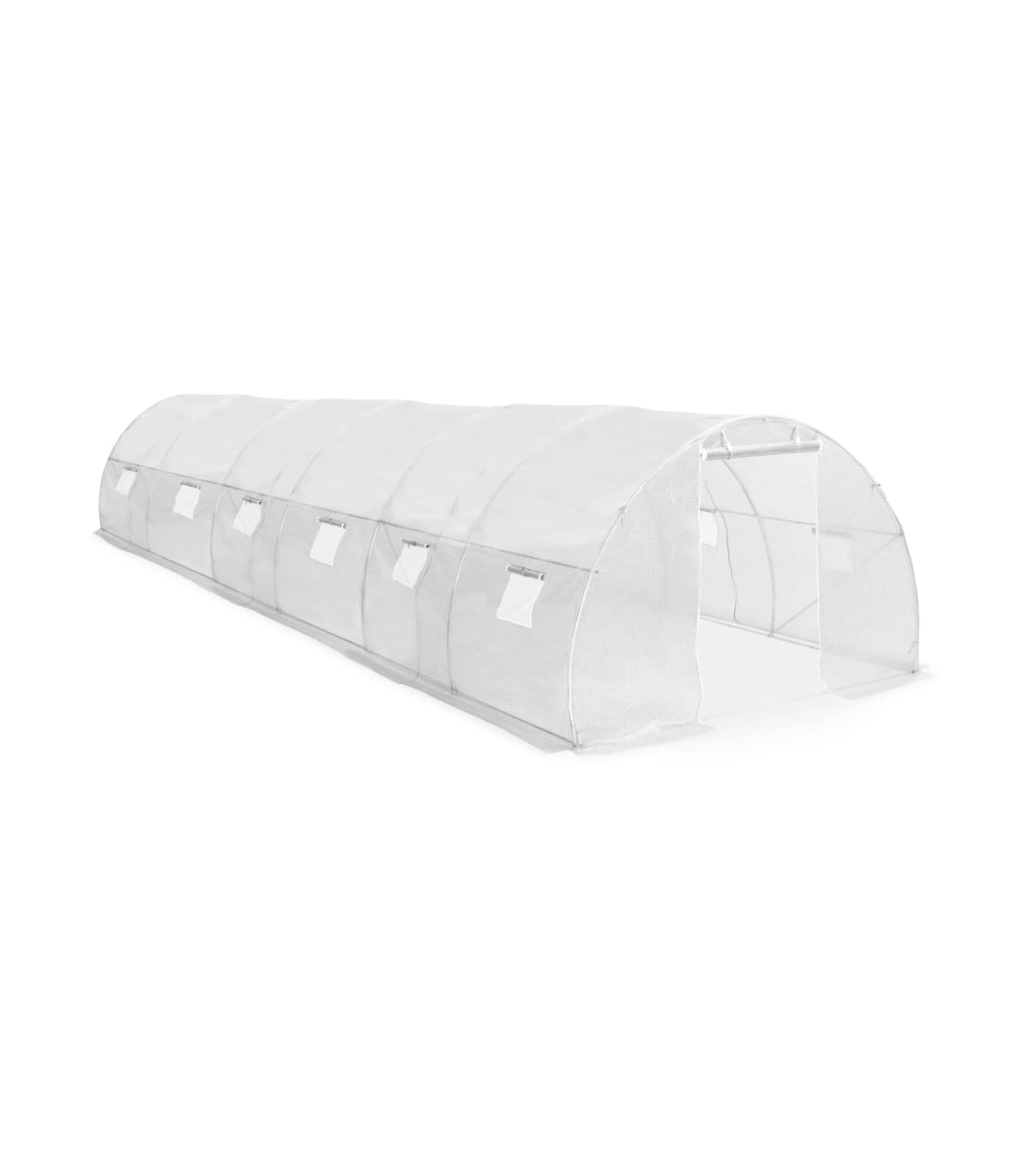 This spacious greenhouse can accommodate a considerable number of fruits, vegetables and plants. This plant house will be a great solution for protecting your plants against wind, rain, sunshine and bird damage. The greenhouse is made of 170g/m² PE mesh fabric, which is 25% heavier than the standard mesh fabric of many competitors. This plant house has a sturdy and rust-proof galvanised steel frame for extra stability. This greenhouse is equipped with two 38 x 38 cm windows for ventilation and one 100 x 185 cm door as well. The greenhouse is easy to assemble. We recommend adding the foundation for added sturdiness. Please note the roof of our greenhouse cannot withstand heavy snowfall. Warning: The greenhouse is not a construction building or conservatory, intended for leisure purposes. It is an impermanent standalone agricultural installation intended for hobby gardening only.