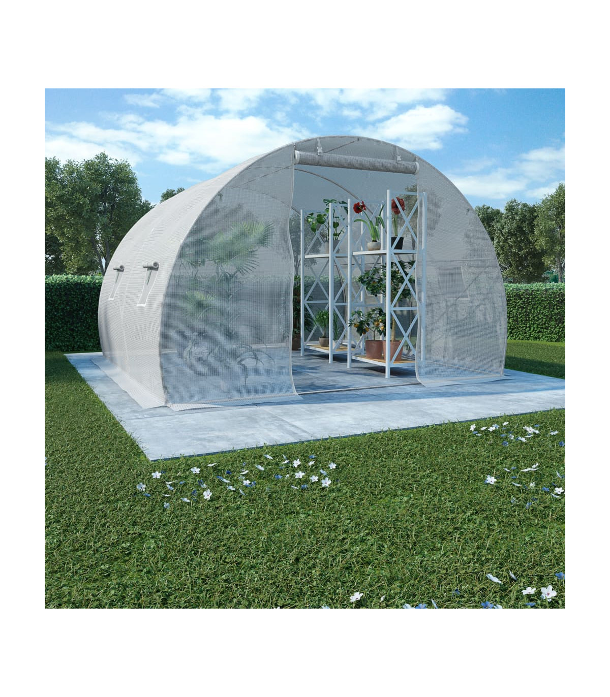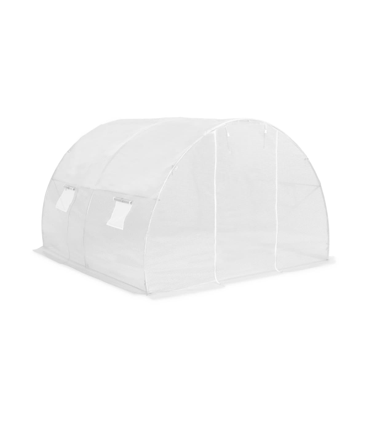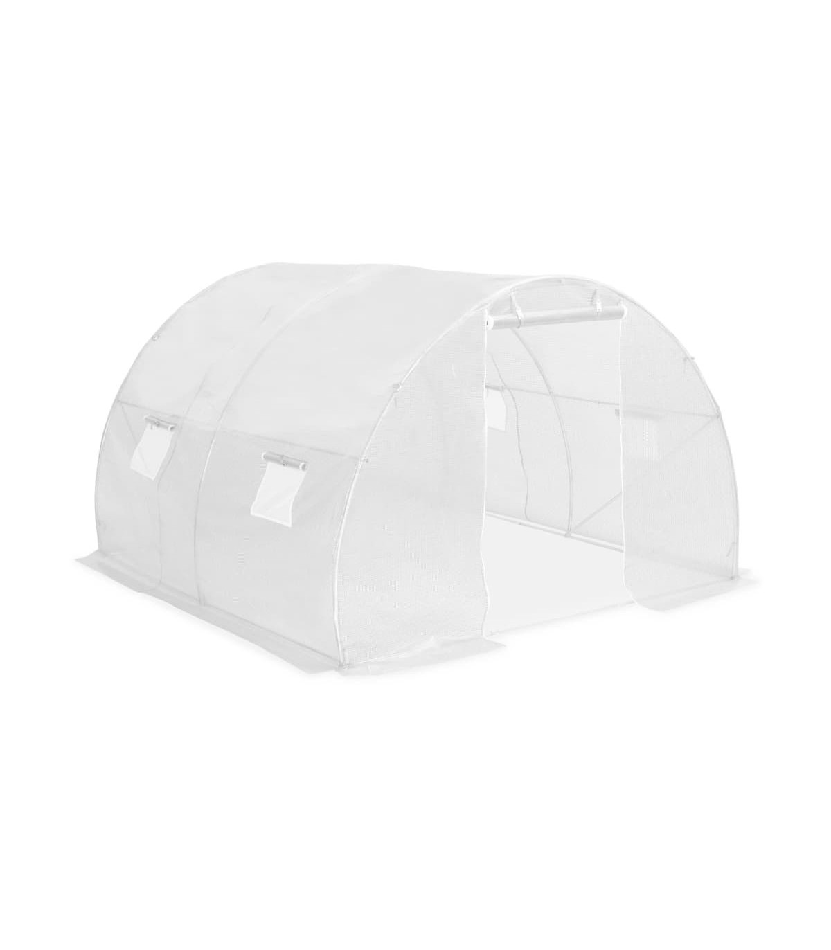 This spacious greenhouse can accommodate a considerable number of fruits, vegetables and plants. This plant house will be a great solution for protecting your plants against wind, rain, sunshine and bird damage. The greenhouse is made of 170g/m² PE mesh fabric, which is 25% heavier than the standard mesh fabric of many competitors. This plant house has a sturdy and rust-proof galvanised steel frame for extra stability. This greenhouse is equipped with two 38 x 38 cm windows for ventilation and one 100 x 185 cm door as well. The greenhouse is easy to assemble. We recommend adding the foundation for added sturdiness. Please note the roof of our greenhouse cannot withstand heavy snowfall. Warning: The greenhouse is not a construction building or conservatory, intended for leisure purposes. It is an impermanent standalone agricultural installation intended for hobby gardening only.