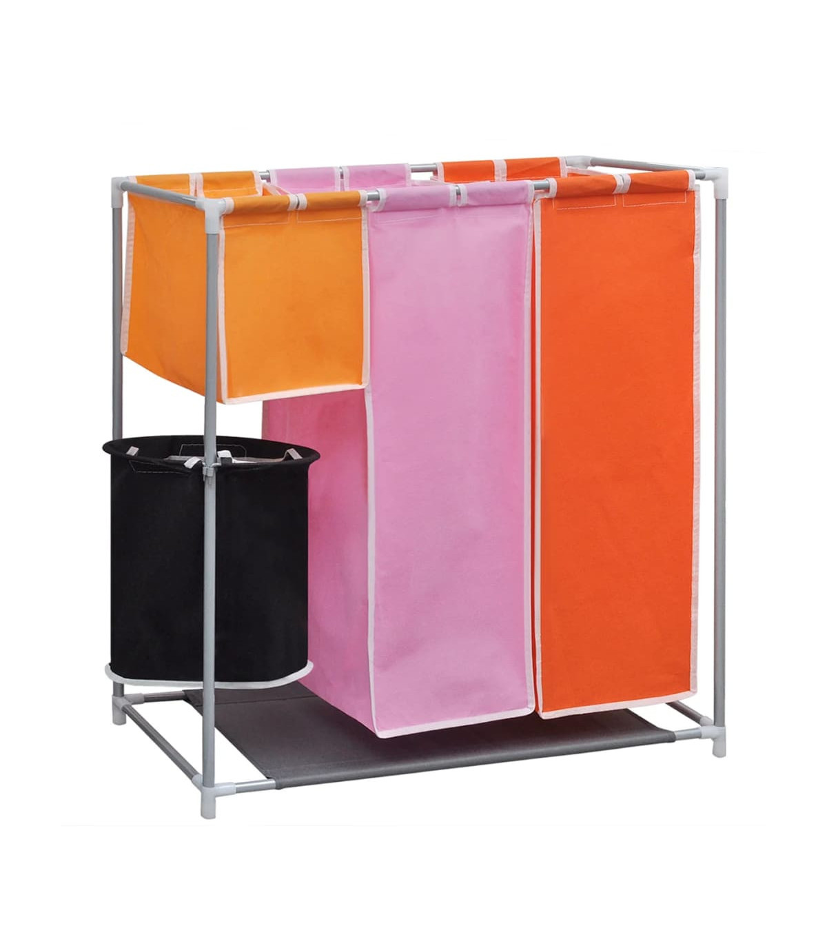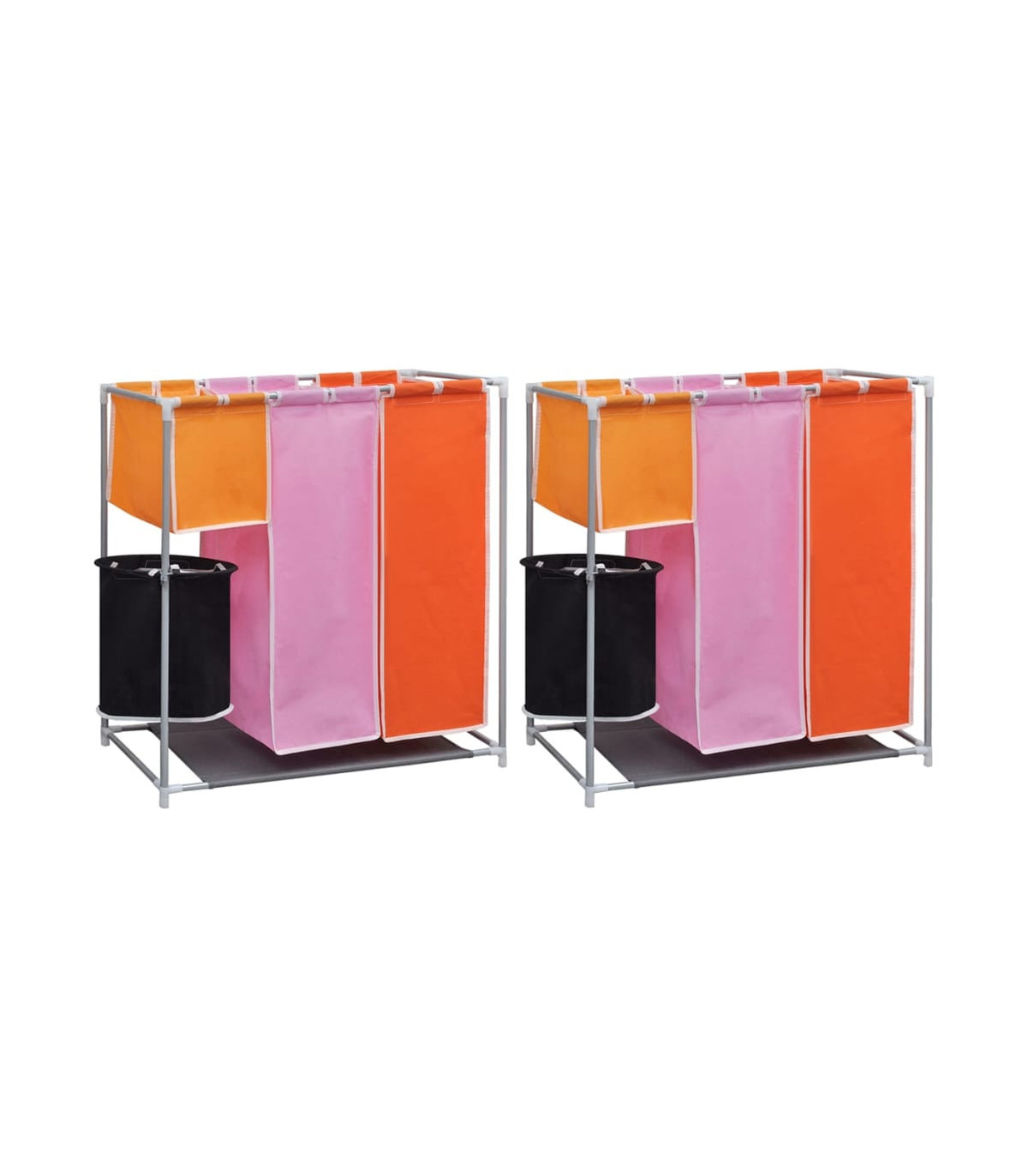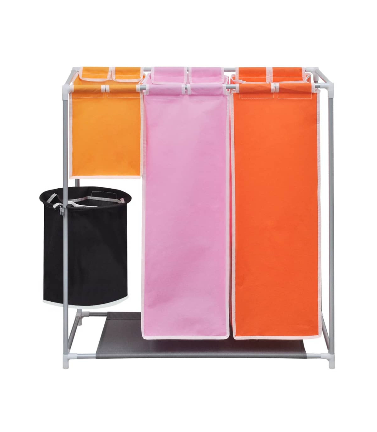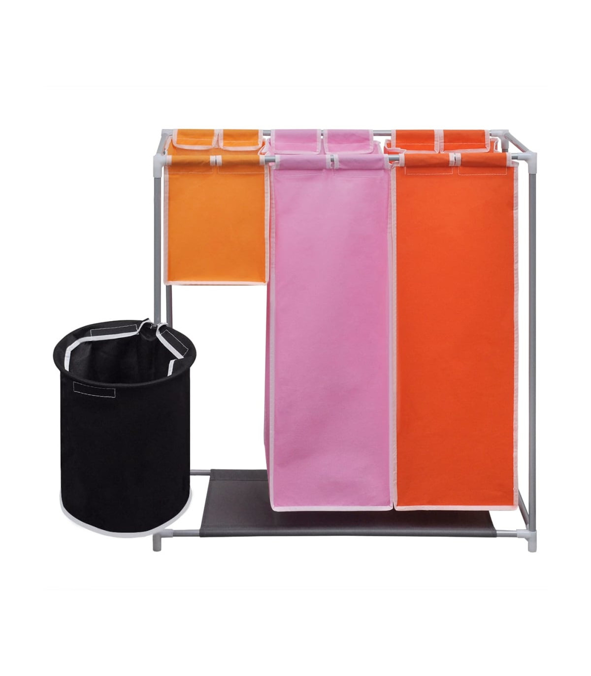 This 3-section laundry sorter hamper with a washing bin will help you to organise your laundry more effectively, and also saves you the hassle of sifting through the smalls. This handy laundry sorter features several colour-coded compartments to keep your whites, darks, underwear and socks separated and sorted prior to washing, which will make doing the laundry a lot easier. Each laundry bag, along with the laundry bin is removable and washable thanks to the high-quality fabric. The durable iron frame is lightweight yet sturdy. This convenient piece also has a fabric bottom layer to keep damp or dirt away. Delivery includes 2 hampers.