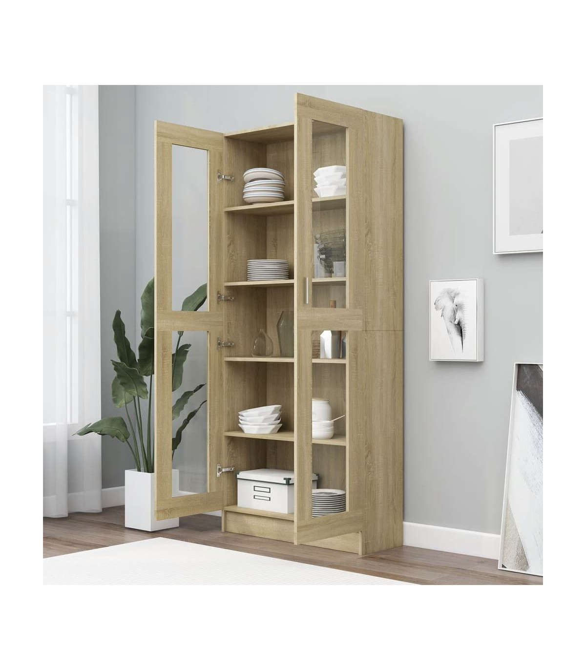 This trendy vitrine cabinet, featuring a sleek and classic design, is meant to be a decorative as well as practical addition to your existing home decor. Premium material: The engineered wood is of exceptional quality with smooth surface and also features strength, stability and resistance to moisture.Ample storage space: The bookshelf is designed with 4 compartments, offering ample storage space for keeping your magazines, books, DVDs, multimedia devices and other decorative items well organised and within reach.Easy-to-clean surface: The book stand is easy to clean with a damp cloth. Note:Screw(s) and plug(s) for inside the wall are not included. Seek and use screw(s) and plug(s) suitable for your walls. If you are uncertain, seek professional advice. Read and follow each step of the instruction carefully. WARNING:In order to prevent overturning, this product must be used with the wall attachment device provided.