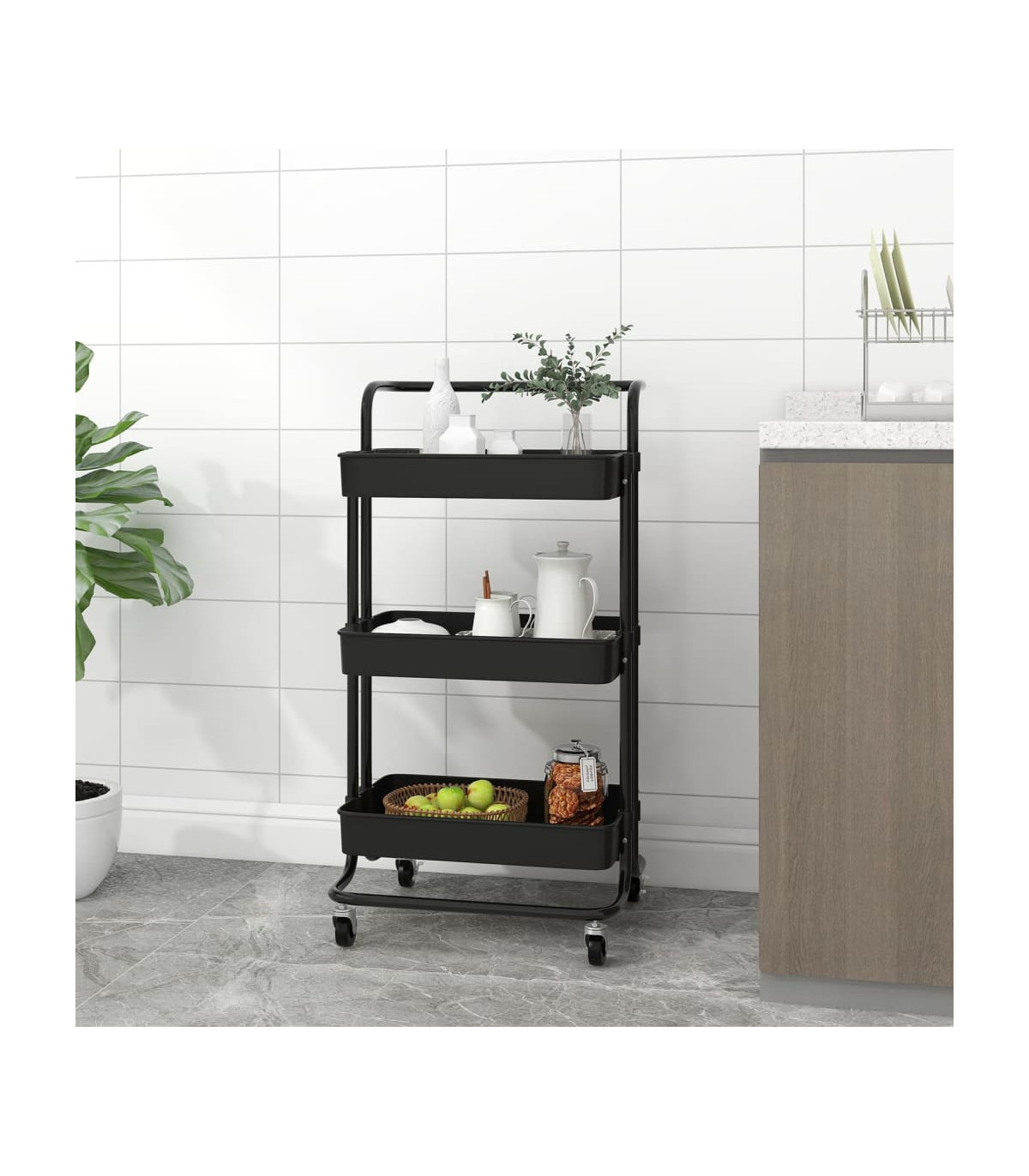 vidaXL 3-Tier Kitchen Trolley Black 42x35x85 cm Iron and ABS