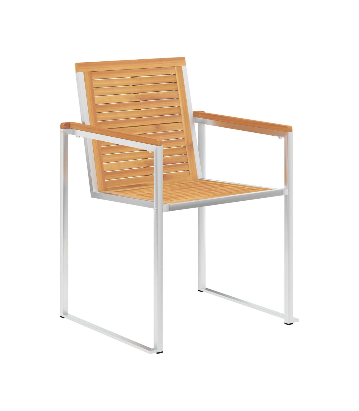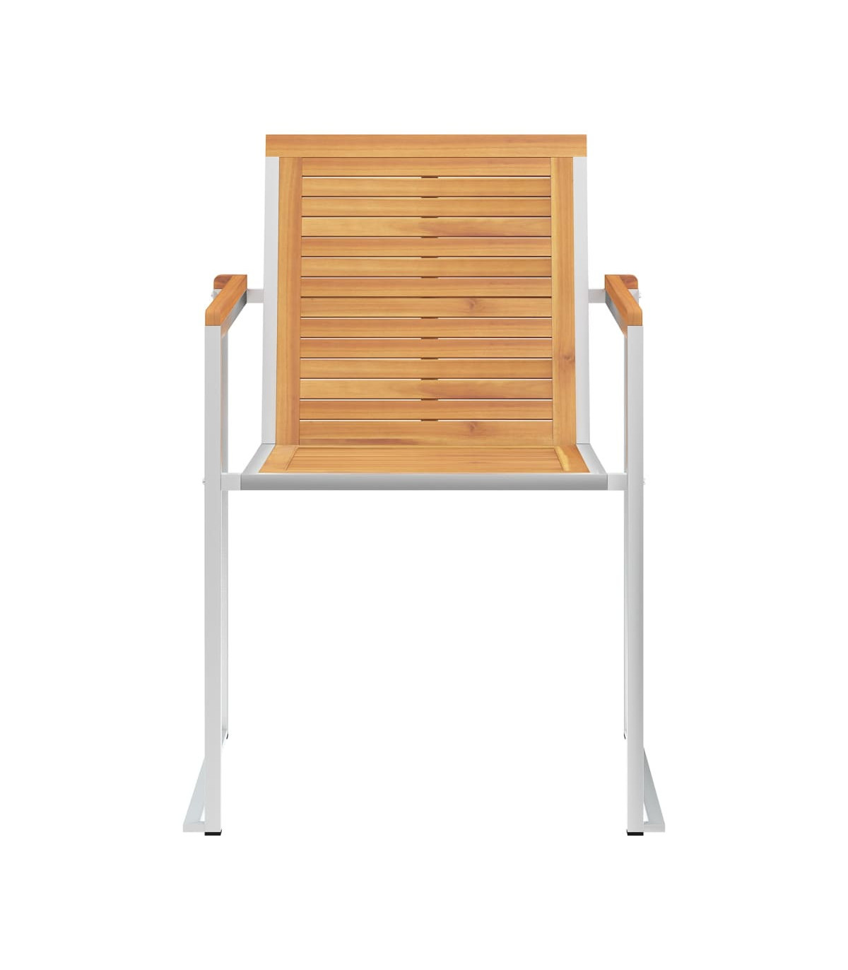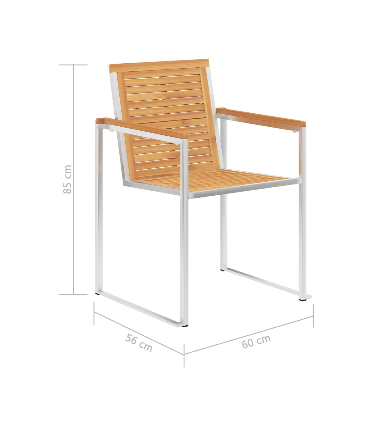 These stackable garden wooden chairs are designed to become the focal point of your garden or patio. The chairs are made of oil-finished solid acacia wood in teak look and high grade stainless steel 304, which makes them highly durable, rust resistant, sturdy as well as easy to clean with a damp cloth. Sit down for a lovely outdoor dinner or just relax and enjoy the weather with this classic garden chair set. Delivery includes 2 chairs. Our dining chairs are easy to assemble.