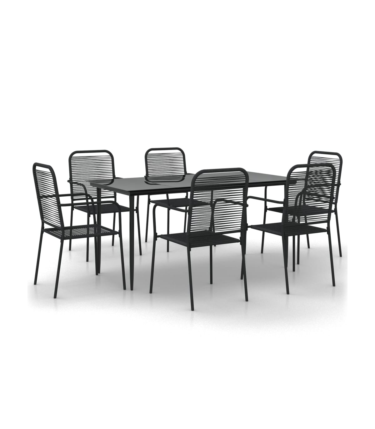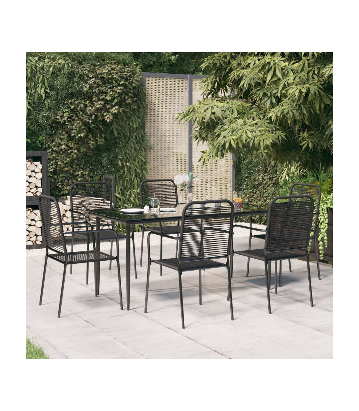 vidaXL 7 Piece Garden Dining Set Black Cotton Rope and Steel