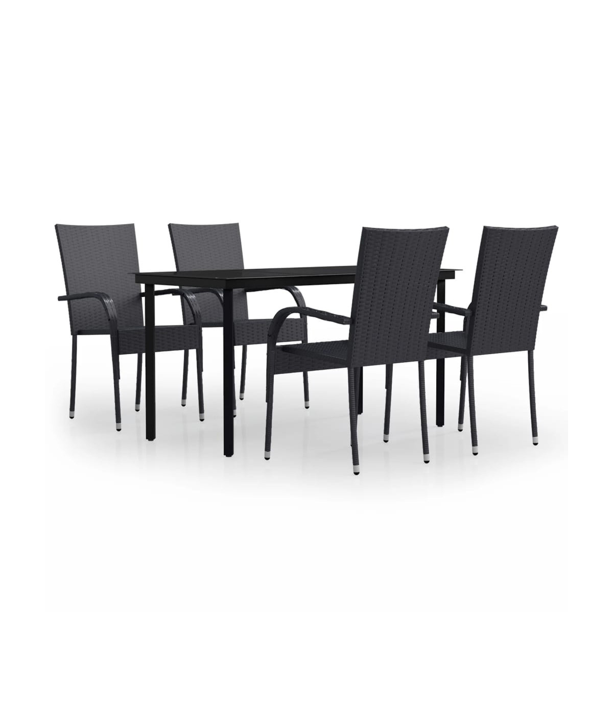 This garden dining set is a great choice for dining or relaxing in the outdoor space! Durable material: PE rattan, also known as poly rattan, is weather resistant and easy to clean. It remains beautiful on the outside for a long period of time. It offers great quality, convenience and an aesthetic look.Sturdy frame: The powder-coated steel frames make the outdoor dining set sturdy and stable for daily outdoor use.Practical tabletop: The smooth tabletop of the dining table is made of tempered glass which is easy to clean with a damp cloth. Additionally, the sturdy tabletop is perfect for placing meals, drinks, and other decorative items.Flexible design: Thanks to the lightweight construction, these outdoor chairs are easy to move and can be stacked to save space when not in use. Note:In order to extend the life of your outdoor furniture, we recommend you to protect it with a waterproof cover.Each product comes with an assembly manual in the box for easy assembly.