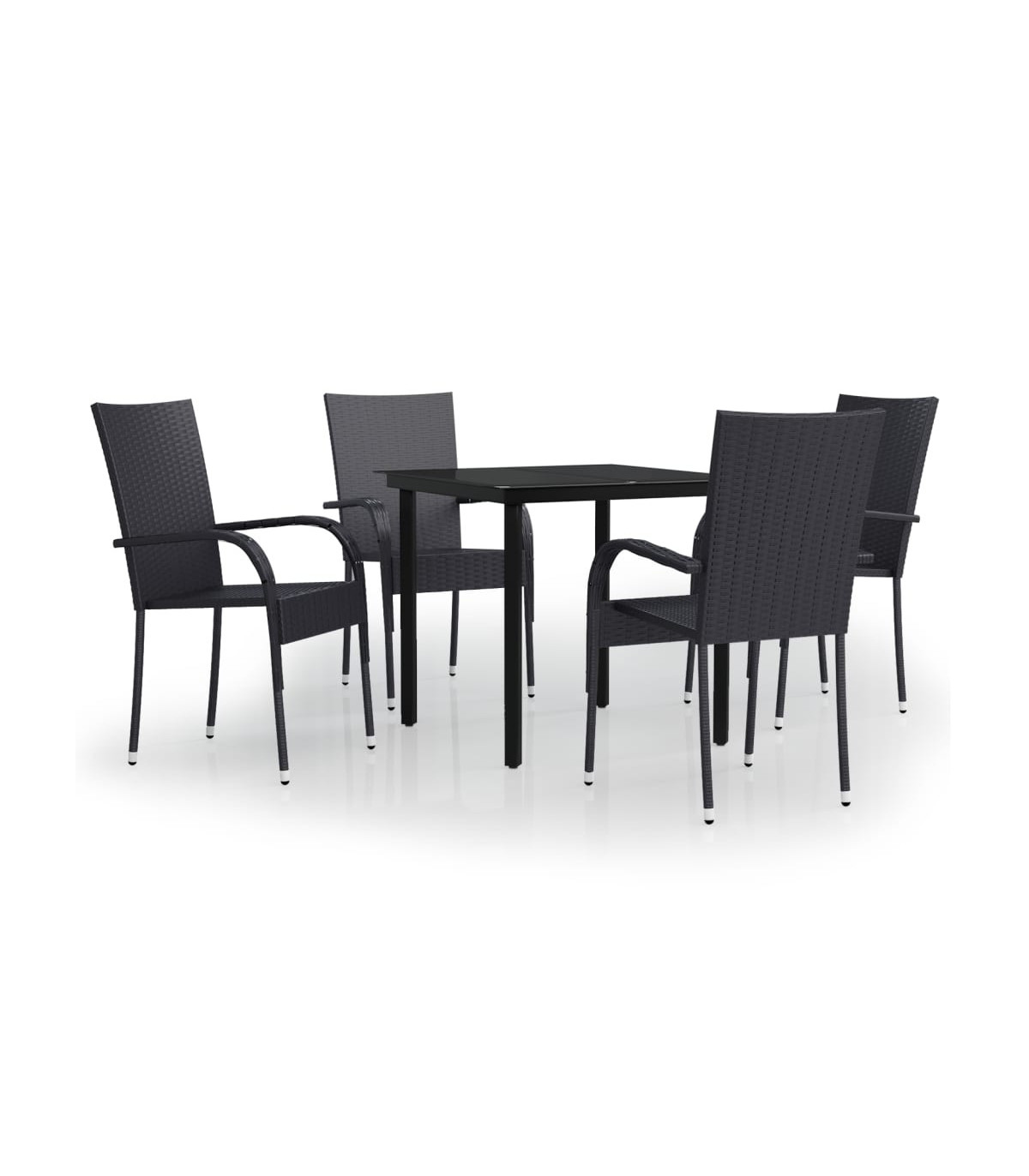 This garden dining set is a great choice for dining or relaxing in the outdoor space! Durable material: PE rattan, also known as poly rattan, is weather resistant and easy to clean. It remains beautiful on the outside for a long period of time. It offers great quality, convenience and an aesthetic look.Sturdy frame: The powder-coated steel frames make the outdoor dining set sturdy and stable for daily outdoor use.Practical tabletop: The smooth tabletop of the dining table is made of tempered glass which is easy to clean with a damp cloth. Additionally, the sturdy tabletop is perfect for placing meals, drinks, and other decorative items.Flexible design: Thanks to the lightweight construction, these outdoor chairs are easy to move and can be stacked to save space when not in use. Note:In order to extend the life of your outdoor furniture, we recommend you to protect it with a waterproof cover.Each product comes with an assembly manual in the box for easy assembly.