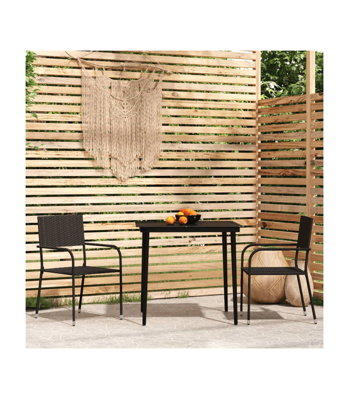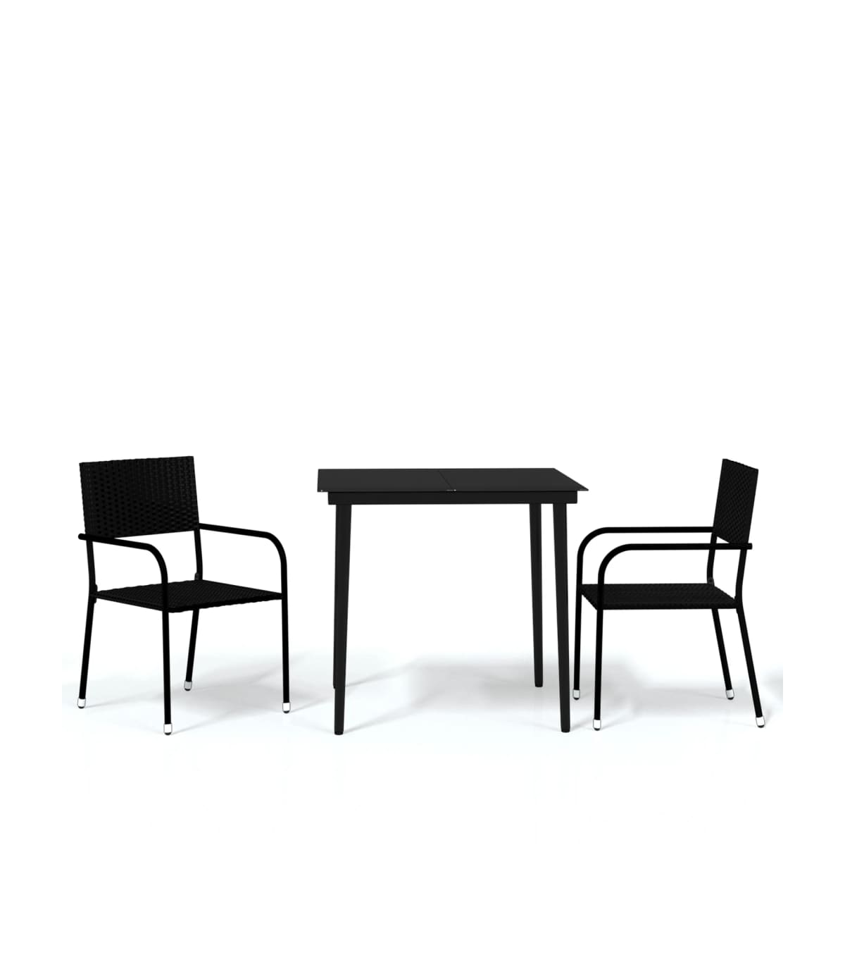 Enjoy a nice meal or afternoon tea in your outdoor space with this garden dining set! Featuring an elegant design, it will become the focal point of your garden and patio! Durable material: PE rattan, also known as poly rattan, is weather resistant and easy to clean. It remains beautiful on the outside for a long period of time. It offers great quality, convenience and an aesthetic look.Sturdy frame: The powder-coated steel frames make the outdoor dining set sturdy and stable for daily outdoor use.Practical tabletop: The smooth tabletop of the dining table is made of tempered glass which is easy to clean with a damp cloth. Additionally, the sturdy tabletop is perfect for placing meals, drinks, and other decorative items.Flexible design: Thanks to the lightweight construction, these outdoor chairs are easy to move and can be stacked to save space when not in use. Good to know:To make sure your outdoor furniture stays beautiful, we recommend protecting it with a waterproof cover.