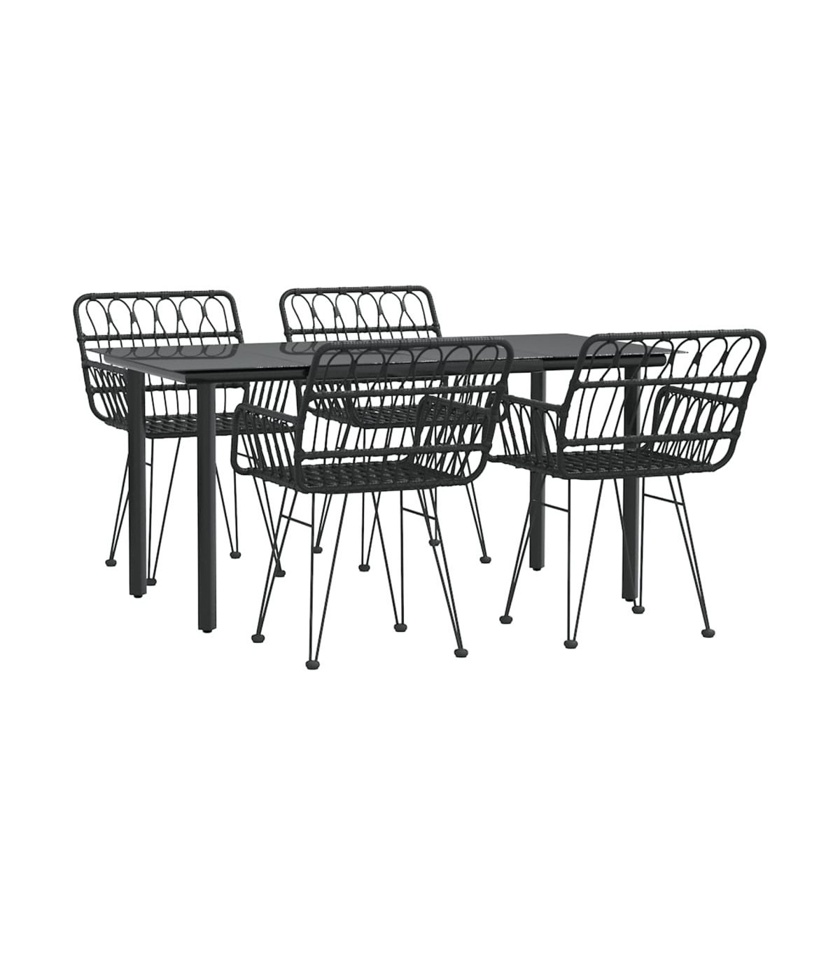 vidaXL 5 Piece Garden Dining Set Black Poly Rattan