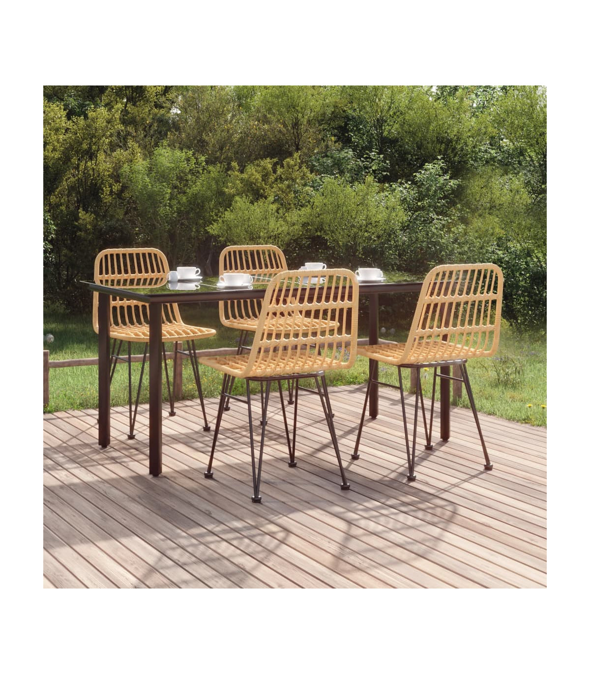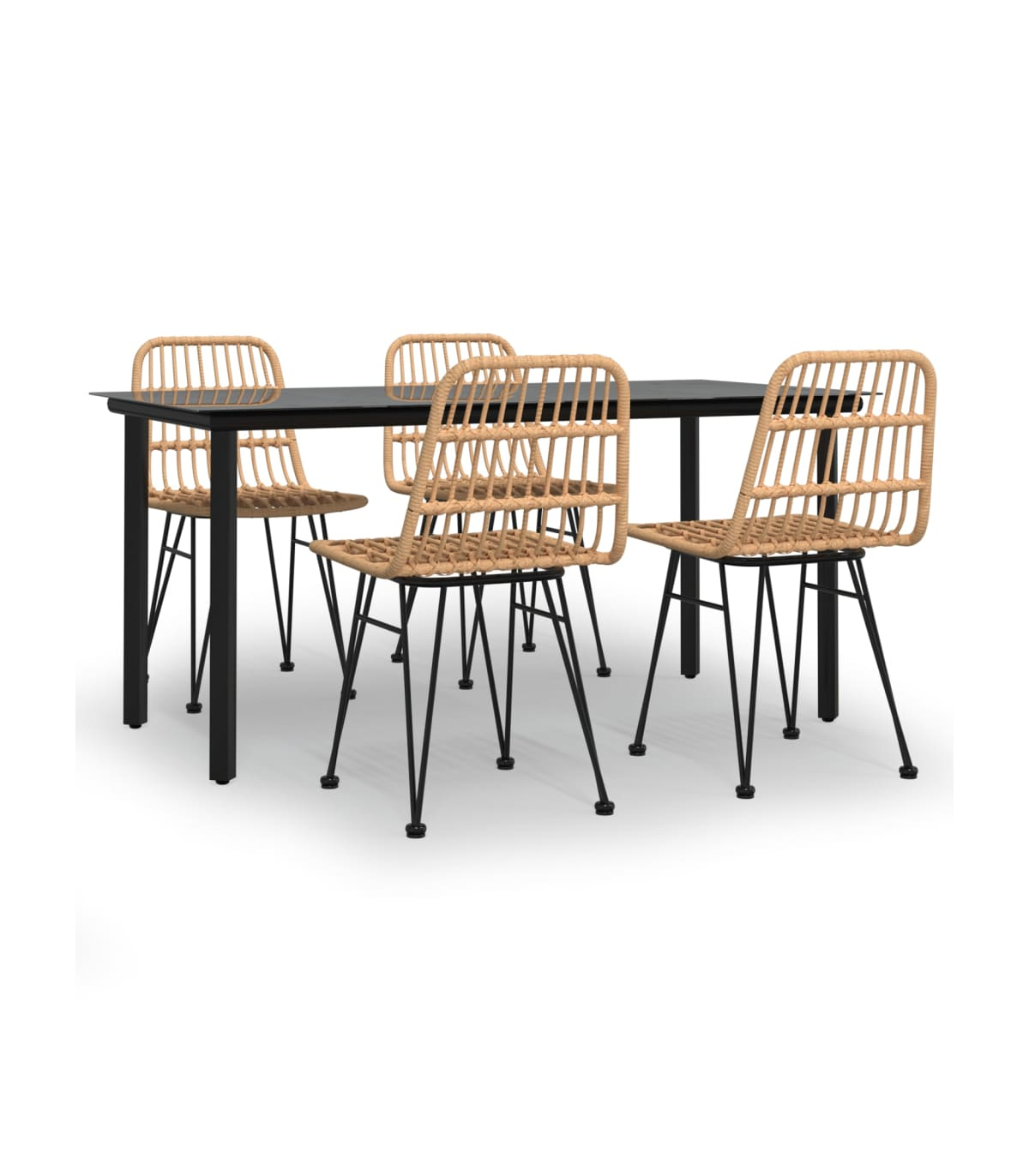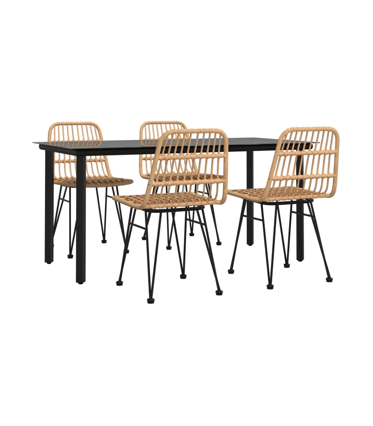 Create a compelling and cohesive aesthetic in your outdoor space with this garden dining set! Durable material: PE rattan, also known as poly rattan, is weather resistant and easy to clean. It remains beautiful on the outside for a long period of time. It offers great quality, convenience and an aesthetic look.Sturdy and stable frame: The steel frames make the patio set sturdy and stable for daily outdoor use.Practical tabletop: The smooth tabletop of the dining table is made of tempered glass which is easy to clean with a damp cloth. Additionally, the sturdy tabletop is perfect for placing meals, drinks, and other decorative items.Comfortable seating: The dining chair is designed with a backrest to offer you a comfortable seating experience.Practical footpads: The bistro set comes with footpads, which help it stand on the ground more firmly. Note:In order to extend the life of your outdoor furniture, we recommend you to protect it with a waterproof cover.Each product comes with an assembly manual in the box for easy assembly.