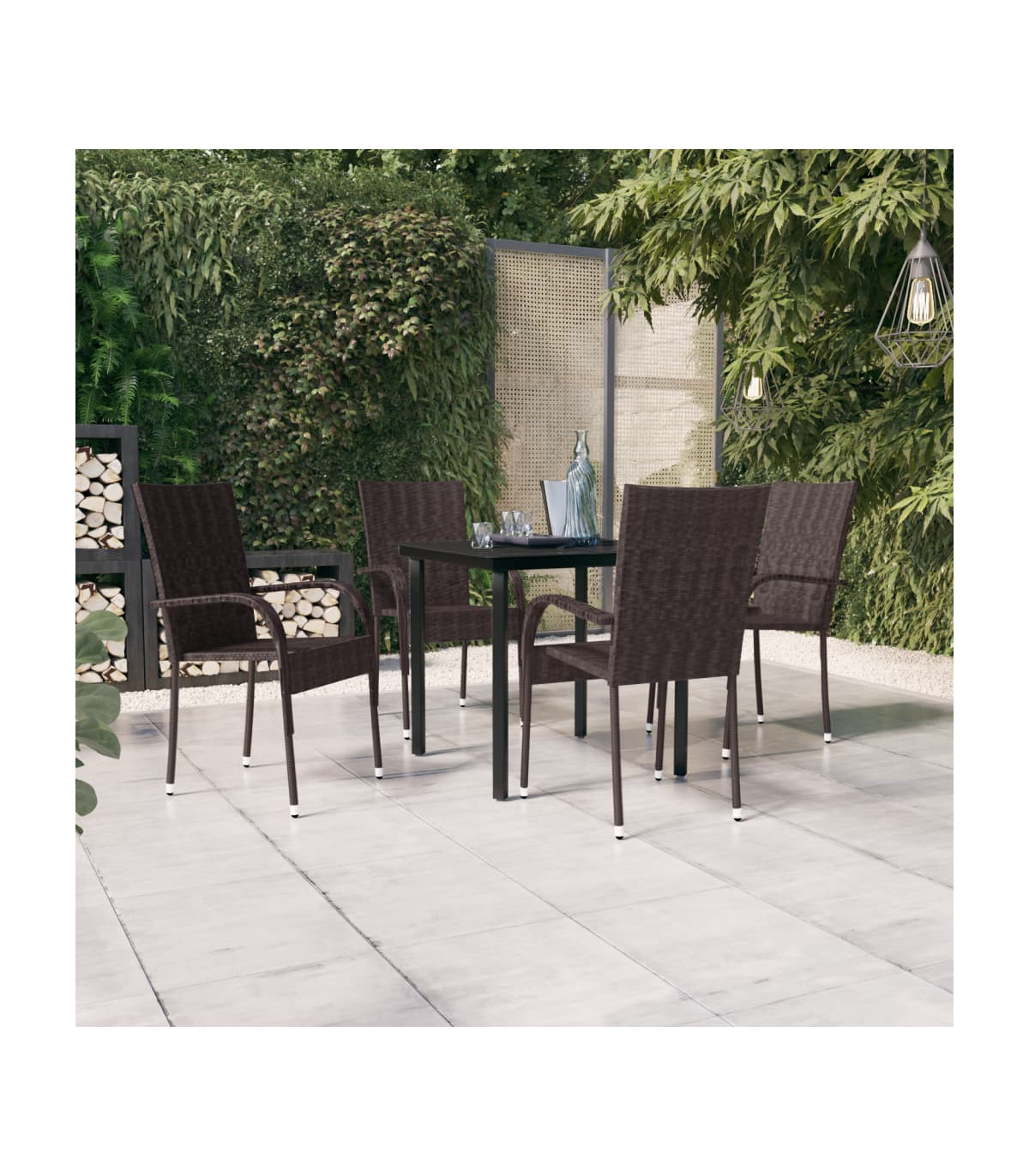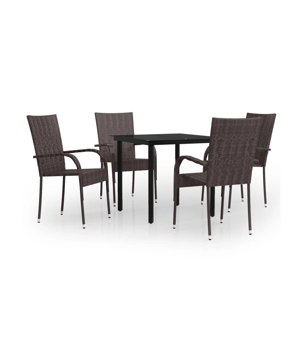 This garden dining set is a great choice for dining or relaxing in the outdoor space! Durable material: PE rattan, also known as poly rattan, is weather resistant and easy to clean. It remains beautiful on the outside for a long period of time. It offers great quality, convenience and an aesthetic look.Sturdy frame: The powder-coated steel frames make the outdoor dining set sturdy and stable for daily outdoor use.Practical tabletop: The smooth tabletop of the dining table is made of tempered glass which is easy to clean with a damp cloth. Additionally, the sturdy tabletop is perfect for placing meals, drinks, and other decorative items.Flexible design: Thanks to the lightweight construction, these outdoor chairs are easy to move and can be stacked to save space when not in use. Note:In order to extend the life of your outdoor furniture, we recommend you to protect it with a waterproof cover.Each product comes with an assembly manual in the box for easy assembly.