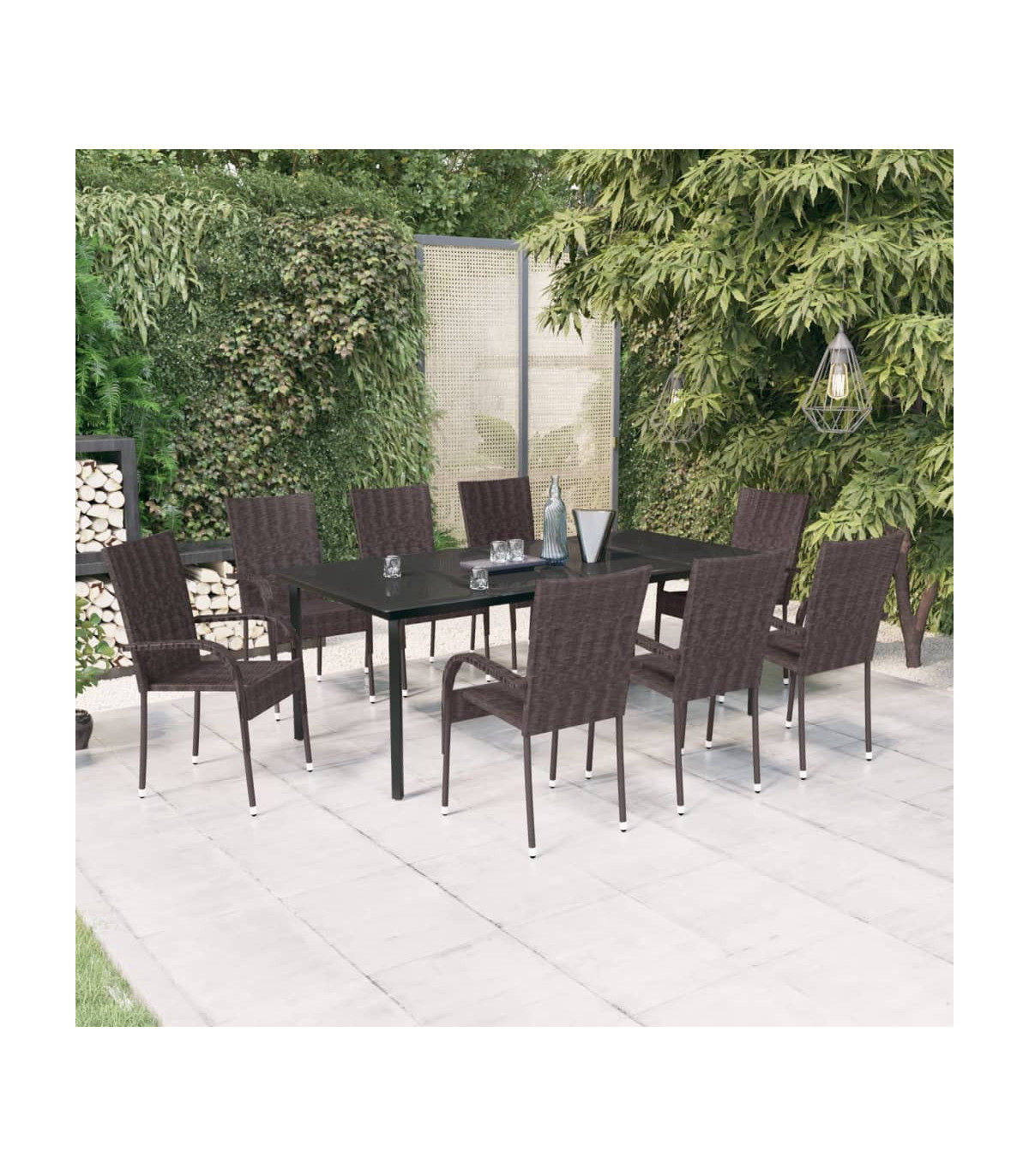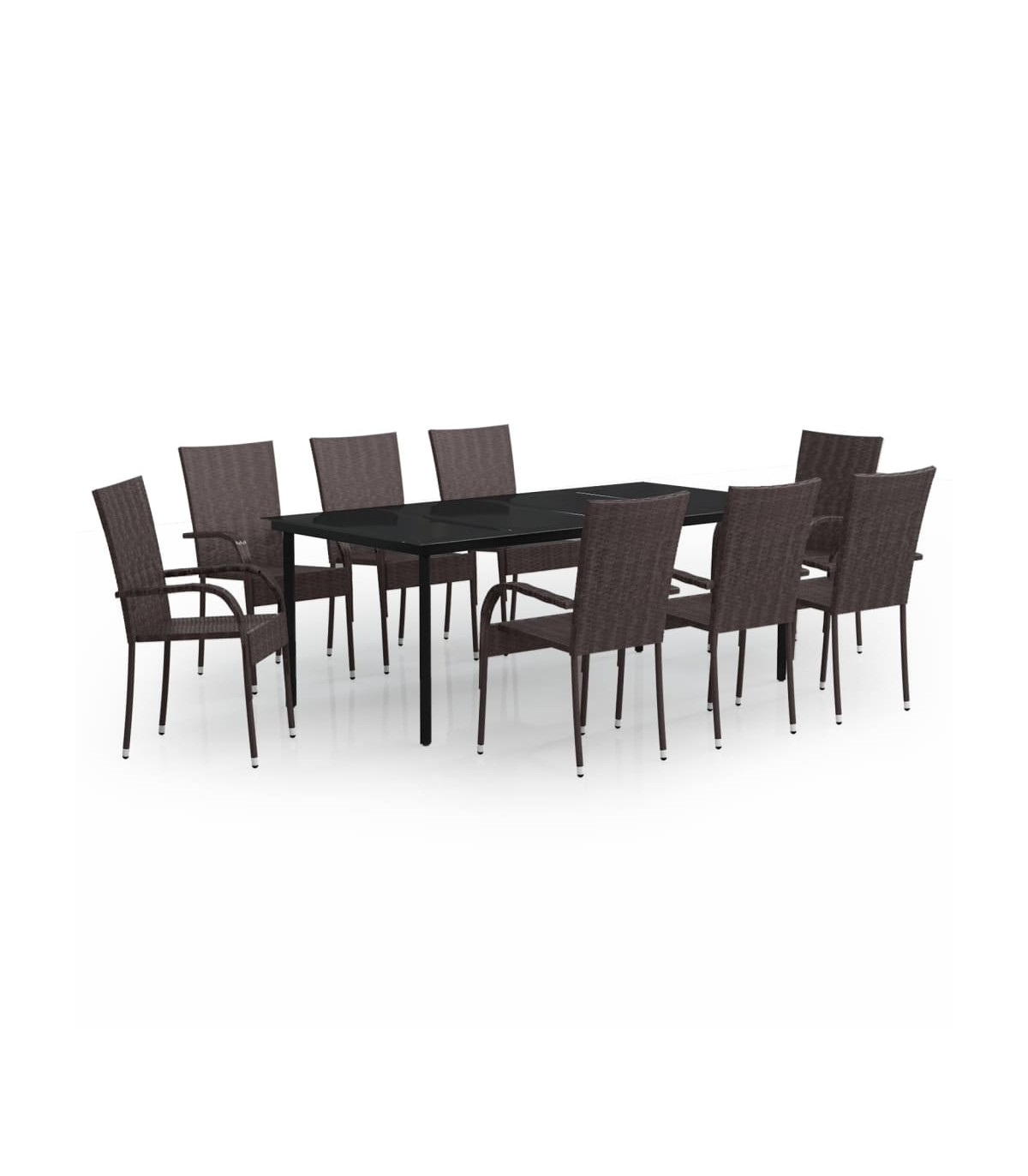 This garden dining set is a great choice for dining or relaxing in the outdoor space! Durable material: PE rattan, also known as poly rattan, is weather resistant and easy to clean. It remains beautiful on the outside for a long period of time. It offers great quality, convenience and an aesthetic look.Sturdy frame: The powder-coated steel frames make the outdoor dining set sturdy and stable for daily outdoor use.Practical tabletop: The smooth tabletop of the dining table is made of tempered glass which is easy to clean with a damp cloth. Additionally, the sturdy tabletop is perfect for placing meals, drinks, and other decorative items.Flexible design: Thanks to the lightweight construction, these outdoor chairs are easy to move and can be stacked to save space when not in use. Note:In order to extend the life of your outdoor furniture, we recommend you to protect it with a waterproof cover.Each product comes with an assembly manual in the box for easy assembly.