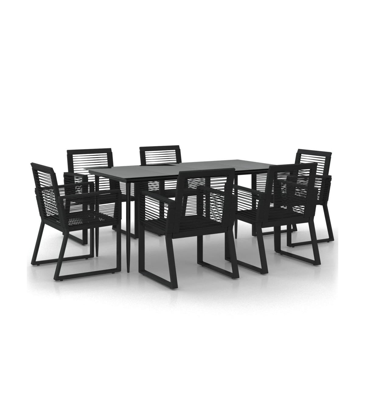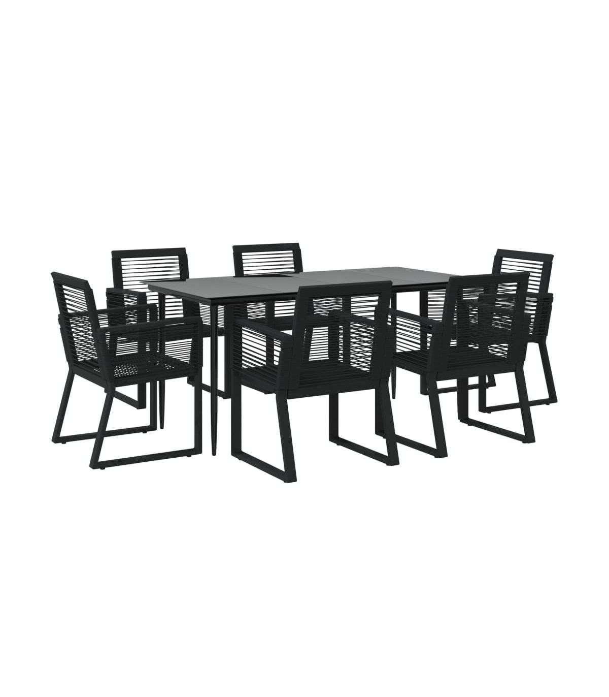Create a compelling and cohesive aesthetic in your outdoor space with this garden dining set! This dinner table is made of a powder-coated steel frame, sturdy and stable for daily outdoor use. The smooth glass tabletop is easy to clean with a damp cloth and perfect for placing meals, drinks and other decorative items. The garden chairs are made of PVC rattan, woven over a fine lacquered steel frame, making them stable and resistant to poor weather and UV rays. Note: In order to extend the life of your outdoor furniture, we recommend you to clean it regularly and do not leave it outdoors without protection unnecessarily. Clean: Use a mild soap solution. Storing: If possible, store in a cool, dry place indoors. If the product is stored outdoors, protect it with a waterproof cover. Wipe and dry the excess water or snow from flat surfaces after a rain or snowfall. Allow sufficient air circulation to avoid moisture-related damage.