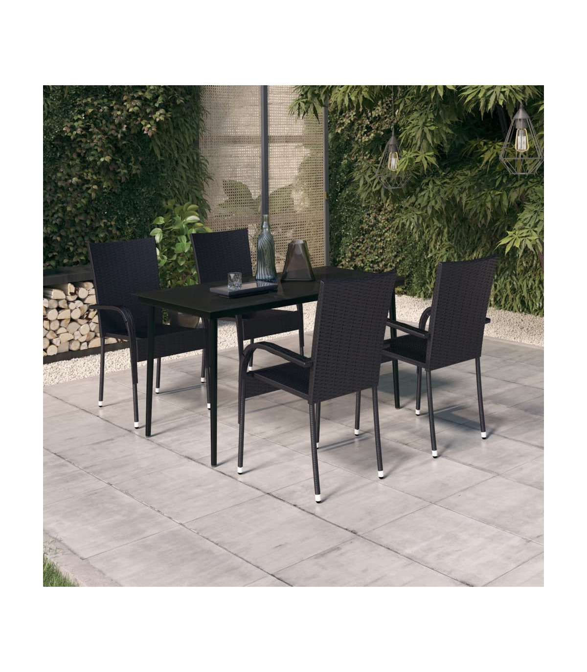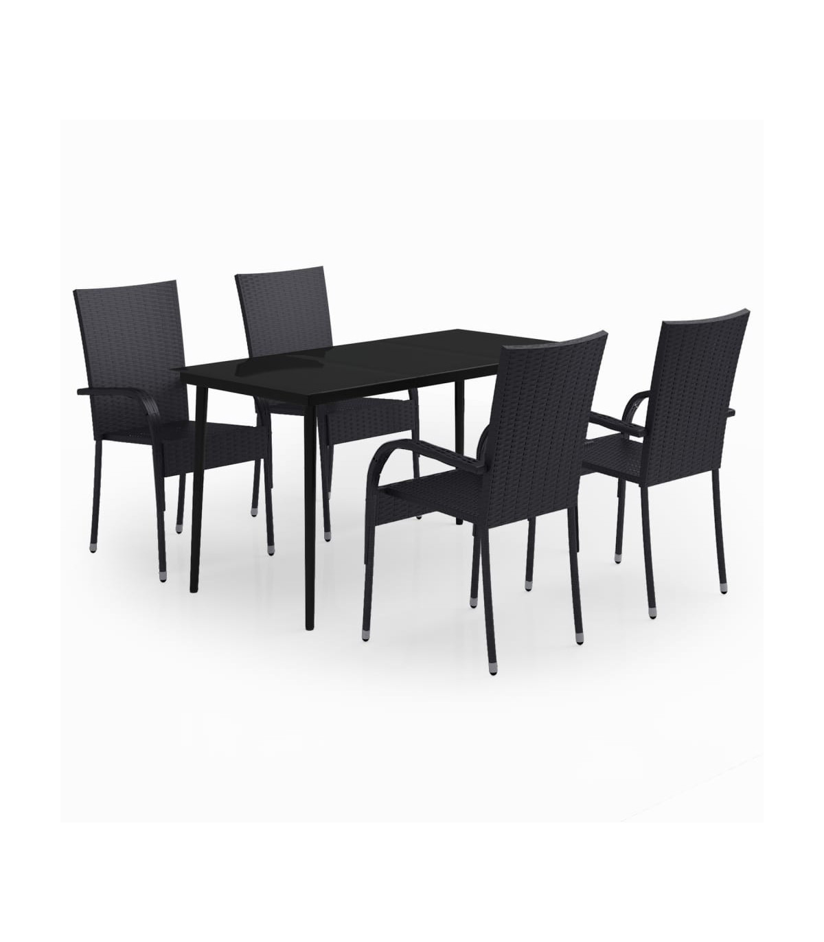 This garden dining set is a great choice for dining or relaxing in the outdoor space! Durable material: PE rattan, also known as poly rattan, is weather resistant and easy to clean. It remains beautiful on the outside for a long period of time. It offers great quality, convenience and an aesthetic look.Sturdy frame: The powder-coated steel frames make the outdoor dining set sturdy and stable for daily outdoor use.Practical tabletop: The smooth tabletop of the dining table is made of tempered glass which is easy to clean with a damp cloth. Additionally, the sturdy tabletop is perfect for placing meals, drinks, and other decorative items.Flexible design: Thanks to the lightweight construction, these outdoor chairs are easy to move and can be stacked to save space when not in use. Note:In order to extend the life of your outdoor furniture, we recommend you to protect it with a waterproof cover.Each product comes with an assembly manual in the box for easy assembly.