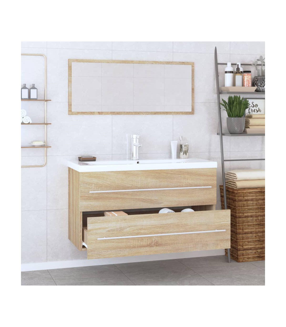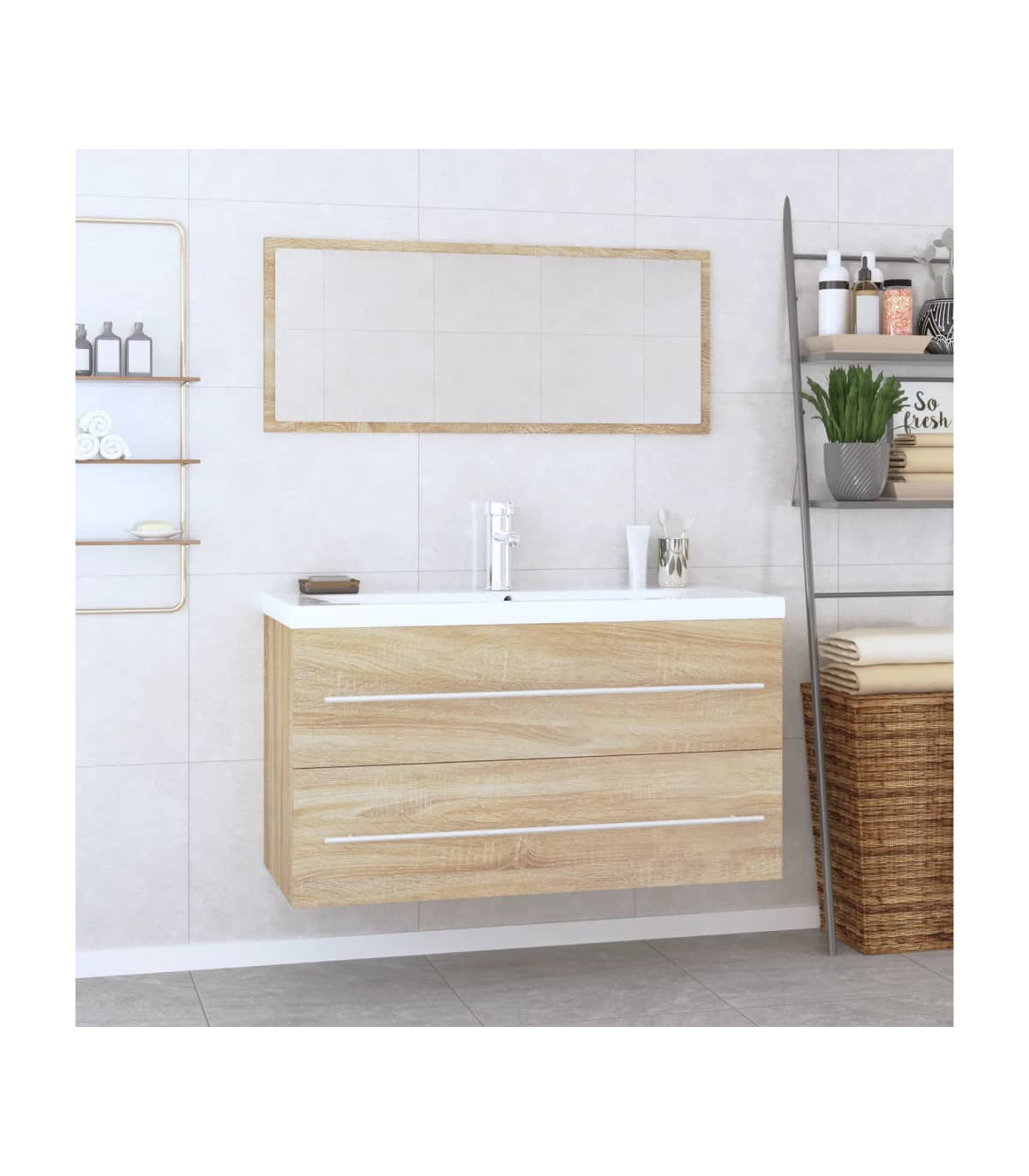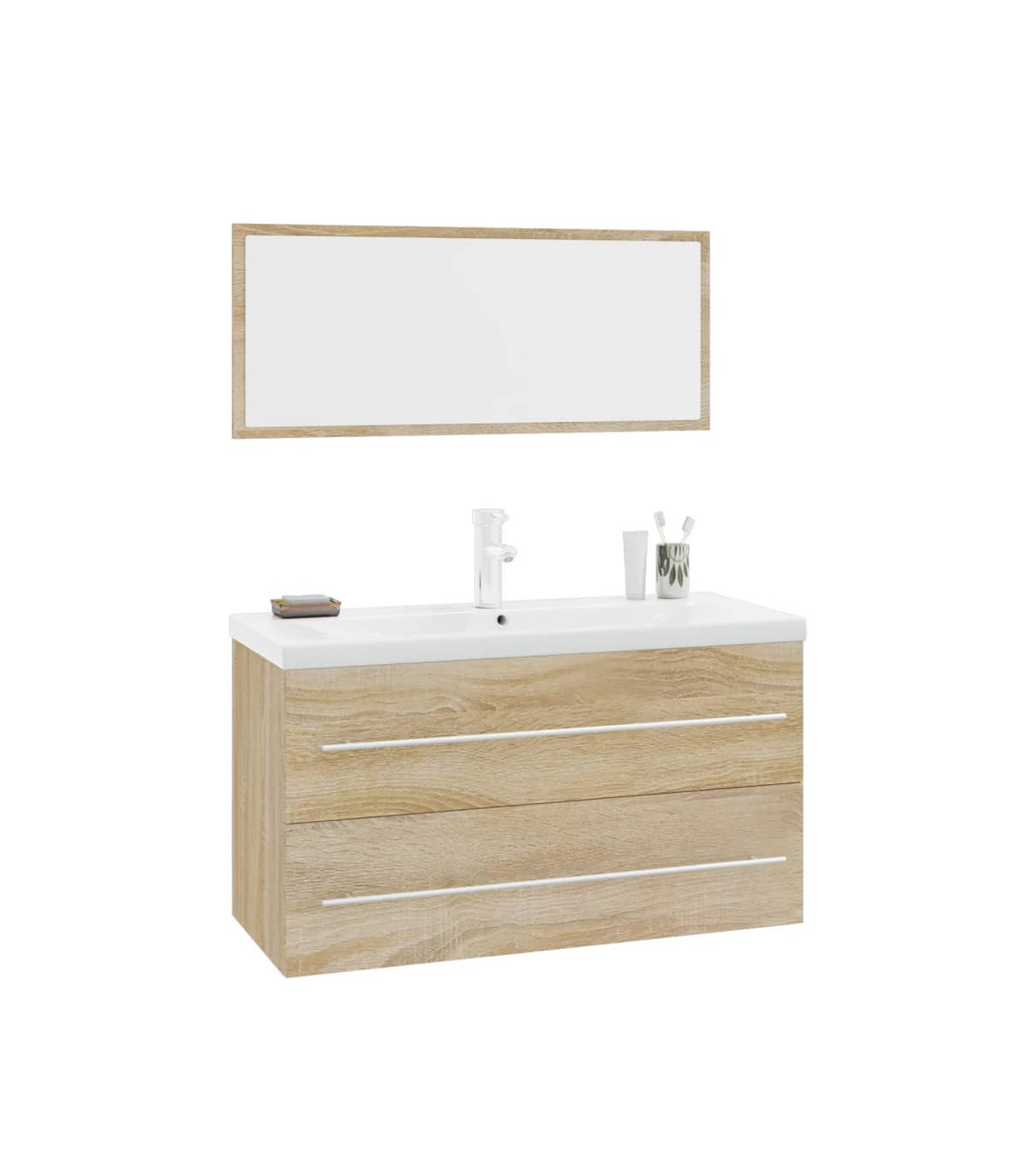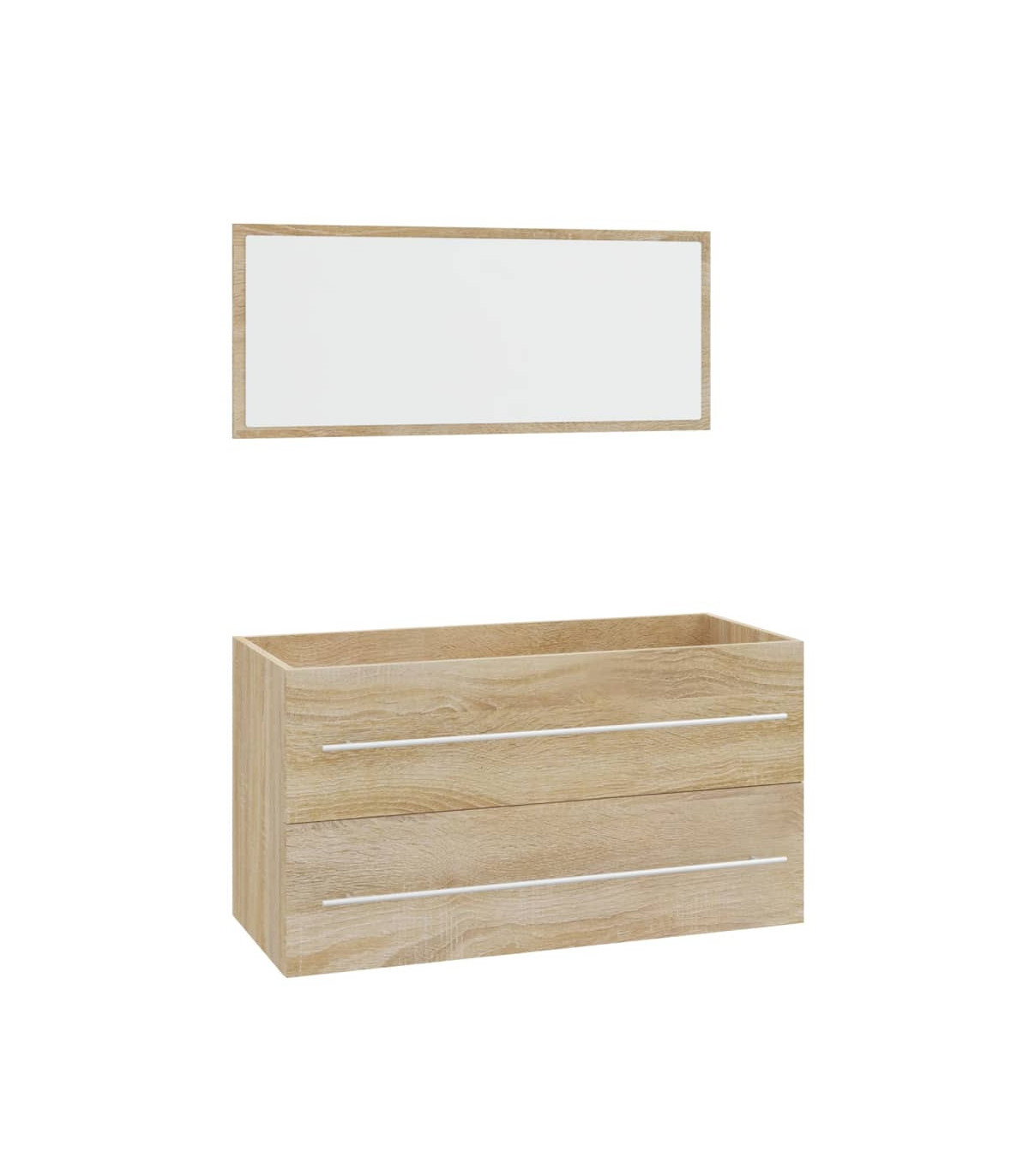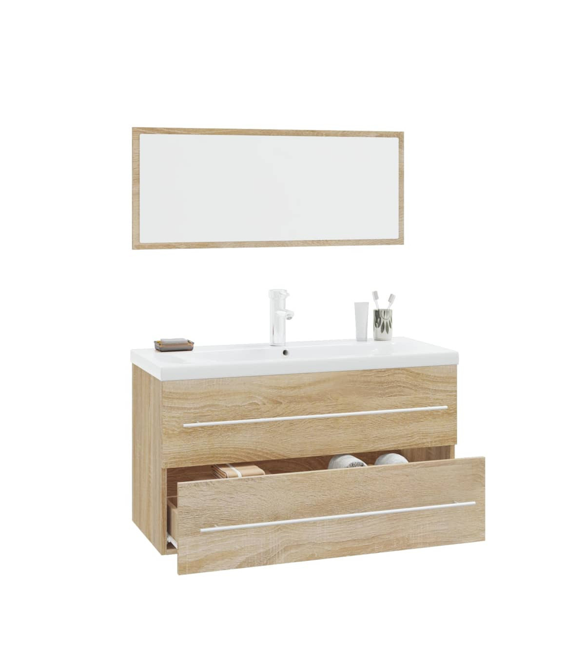 This stylish bathroom furniture set, featuring spacious storage space, is an excellent addition to your bathroom, giving it a tidy and striking appearance! Sturdy material: The under sink cabinet is made of engineered wood, that is of exceptional quality with smooth surface and also features strength, stability and resistance to moisture.Ample storage: The bathroom sink unit features a drawer, offering ample storage space to store items in your bathroom.Practical design: The top of this bathroom cabinet is ideal for placing the sink.Wall-mounted function: The bathroom cabinet and the make up mirror can be wall-mounted to add extra storage space. That way, you can maximise your floor space and keep the area clean.Overflow function: An overflow is also equipped to flow water out when it gets too full. Note:Screw(s) and plug(s) for inside the wall are not included. Seek and use screw(s) and plug(s) suitable for your walls. If you are uncertain, seek professional advice. Read and follow each step of the instruction carefully.The tap and the drain are not included in delivery.Each product comes with an assembly manual in the box for easy assembly.